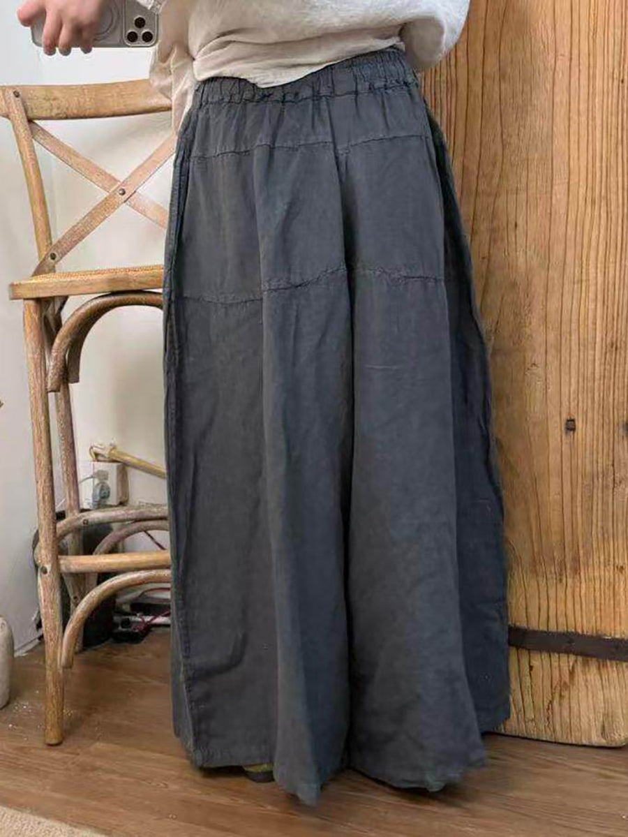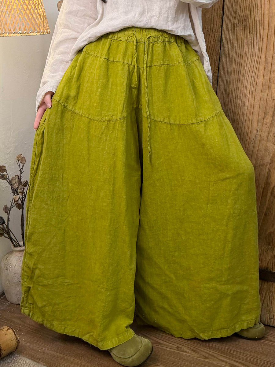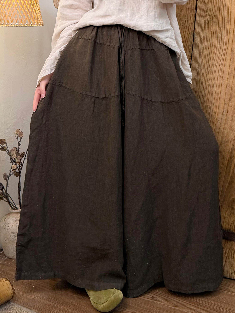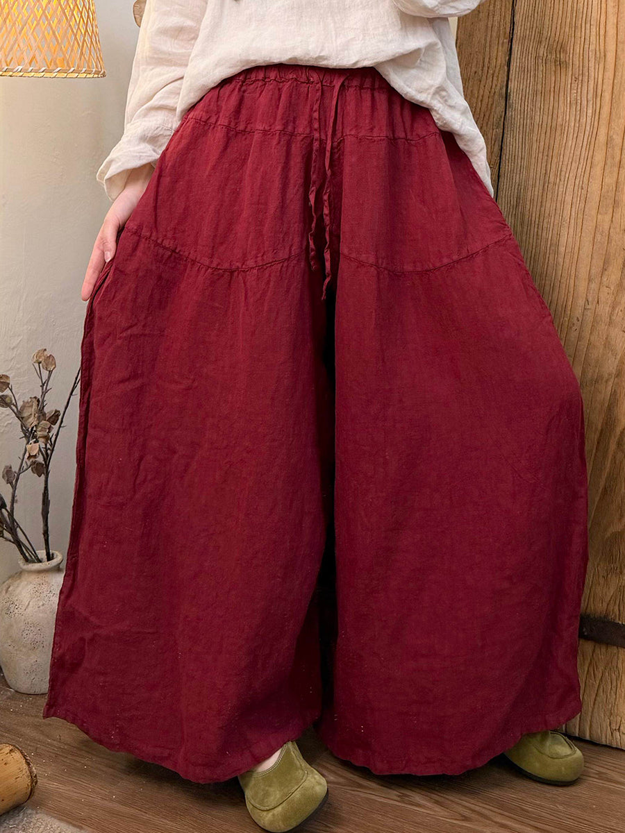 Women Spring Pure Color Linen Wide-leg Pants