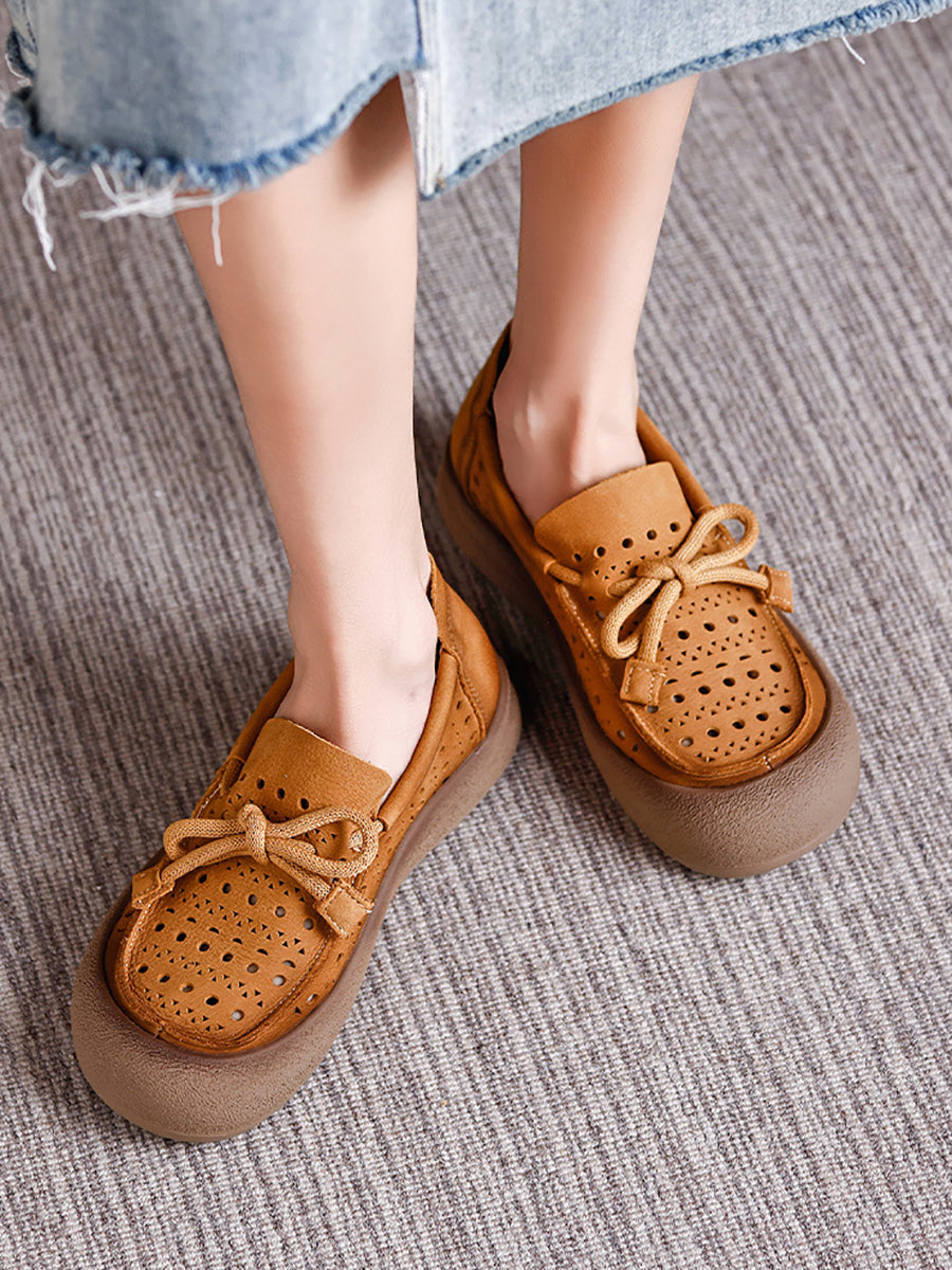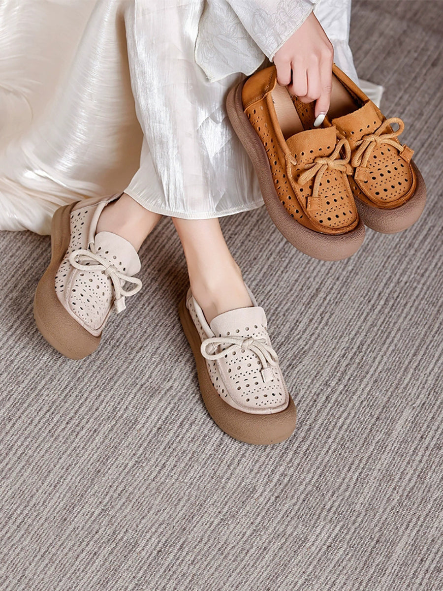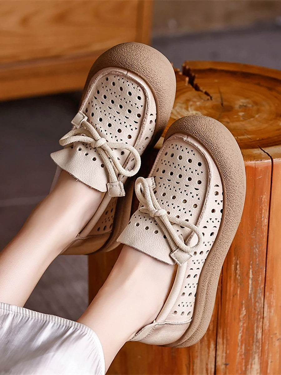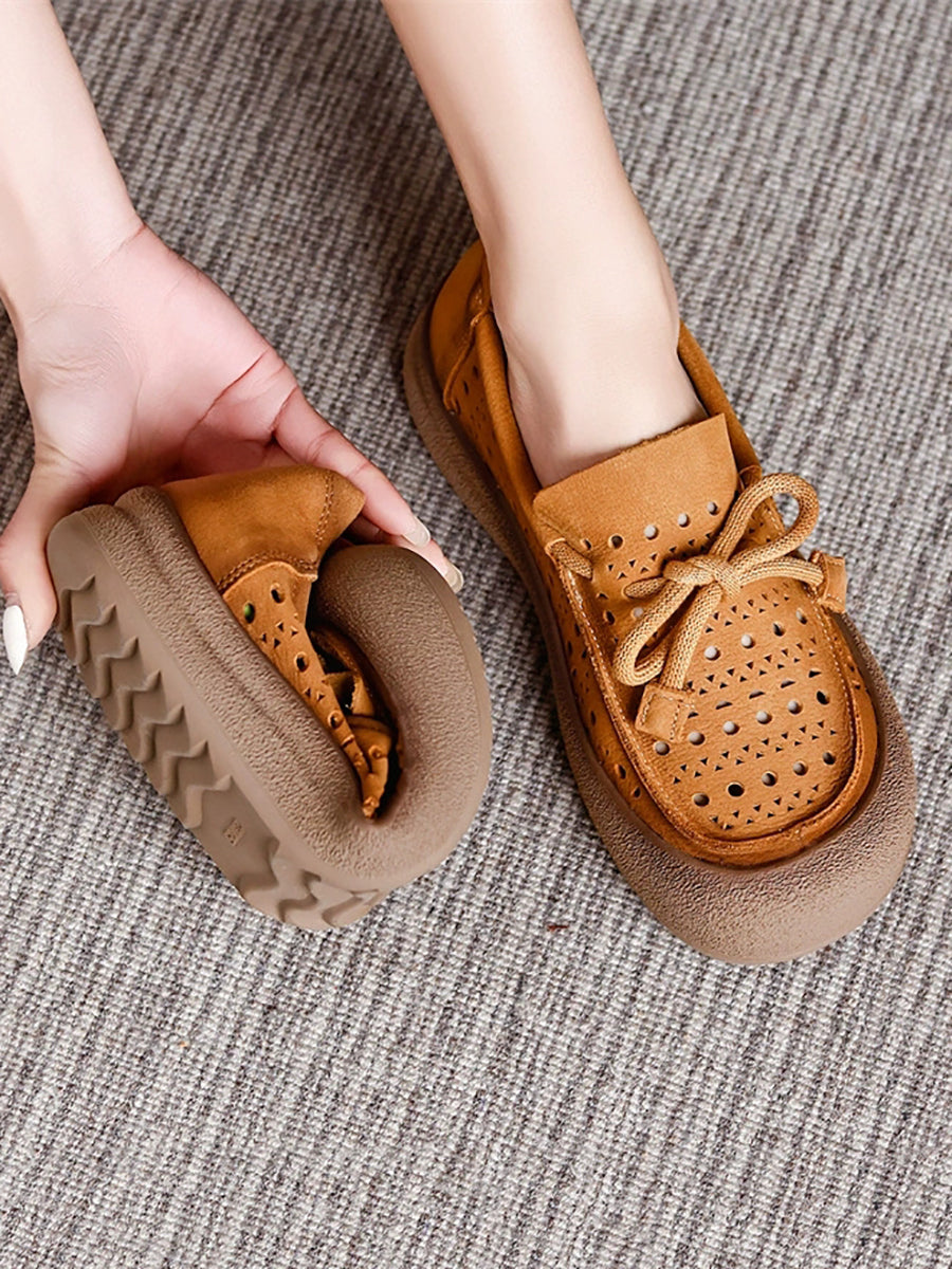 Women Summer Genuine Leather Hollow Out Shoes