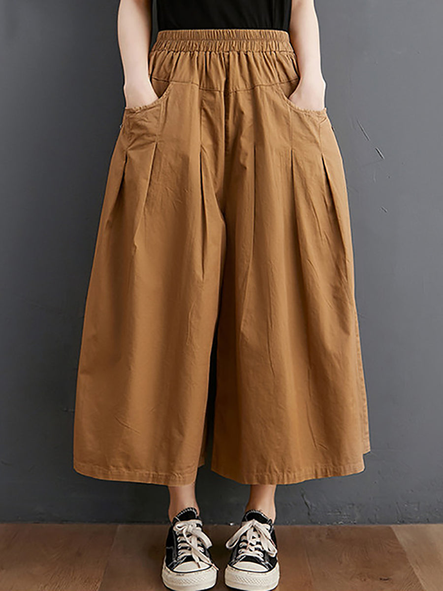 Women Summer Casual Pure Color Wide-leg Pants