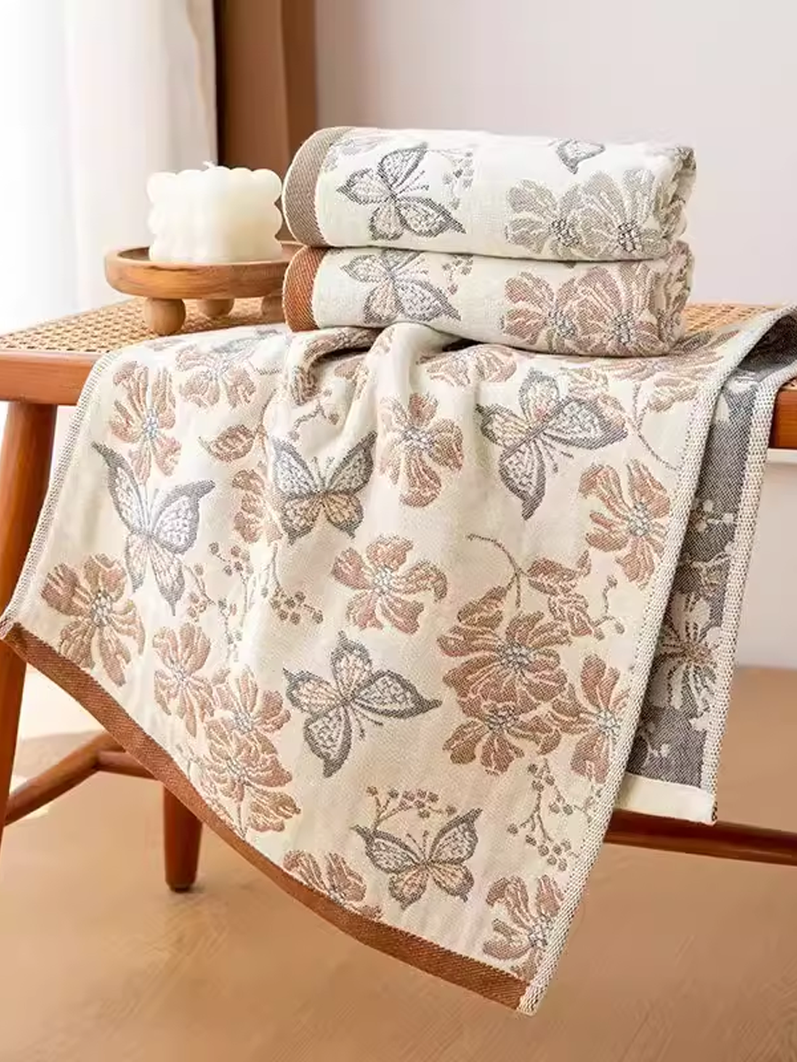Butterfly Jacquard Linen Face Towel 2-Pcs Set
