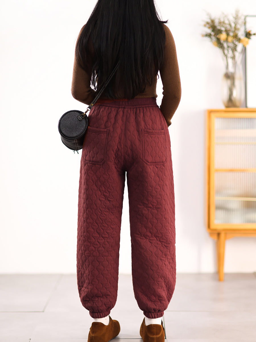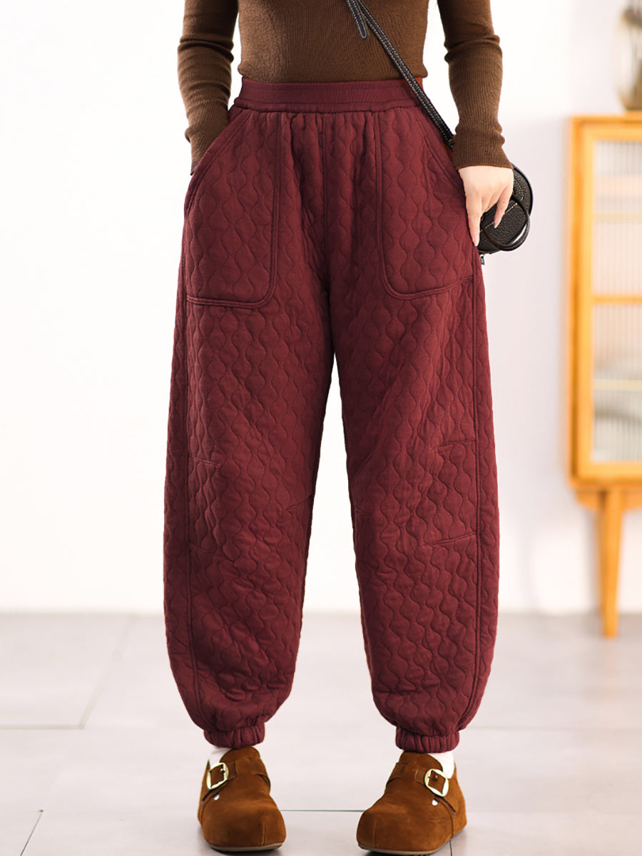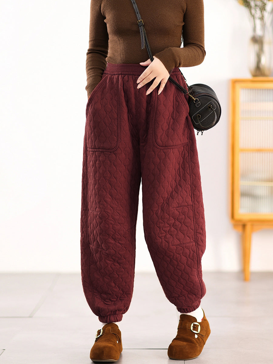 Women Winter Casual Pure Color Padded Harem Pants
