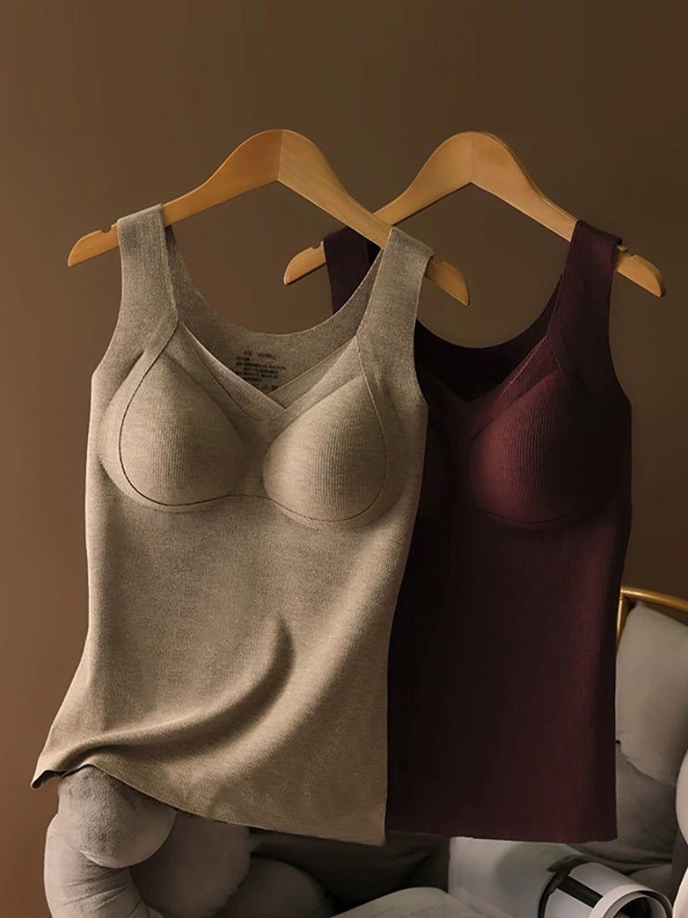 Women Autumn Warm Pure Color V-Neck Base Vest