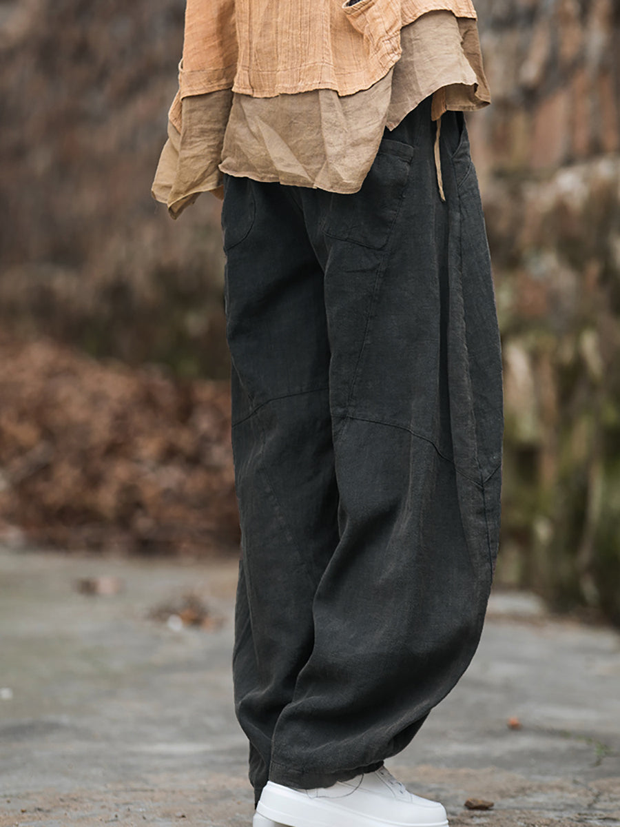 These retro-styled harem pants feature an elastic waist and a solid pattern. With a full length design and convenient pockets, they are perfect for colder seasons such as autumn and winter.