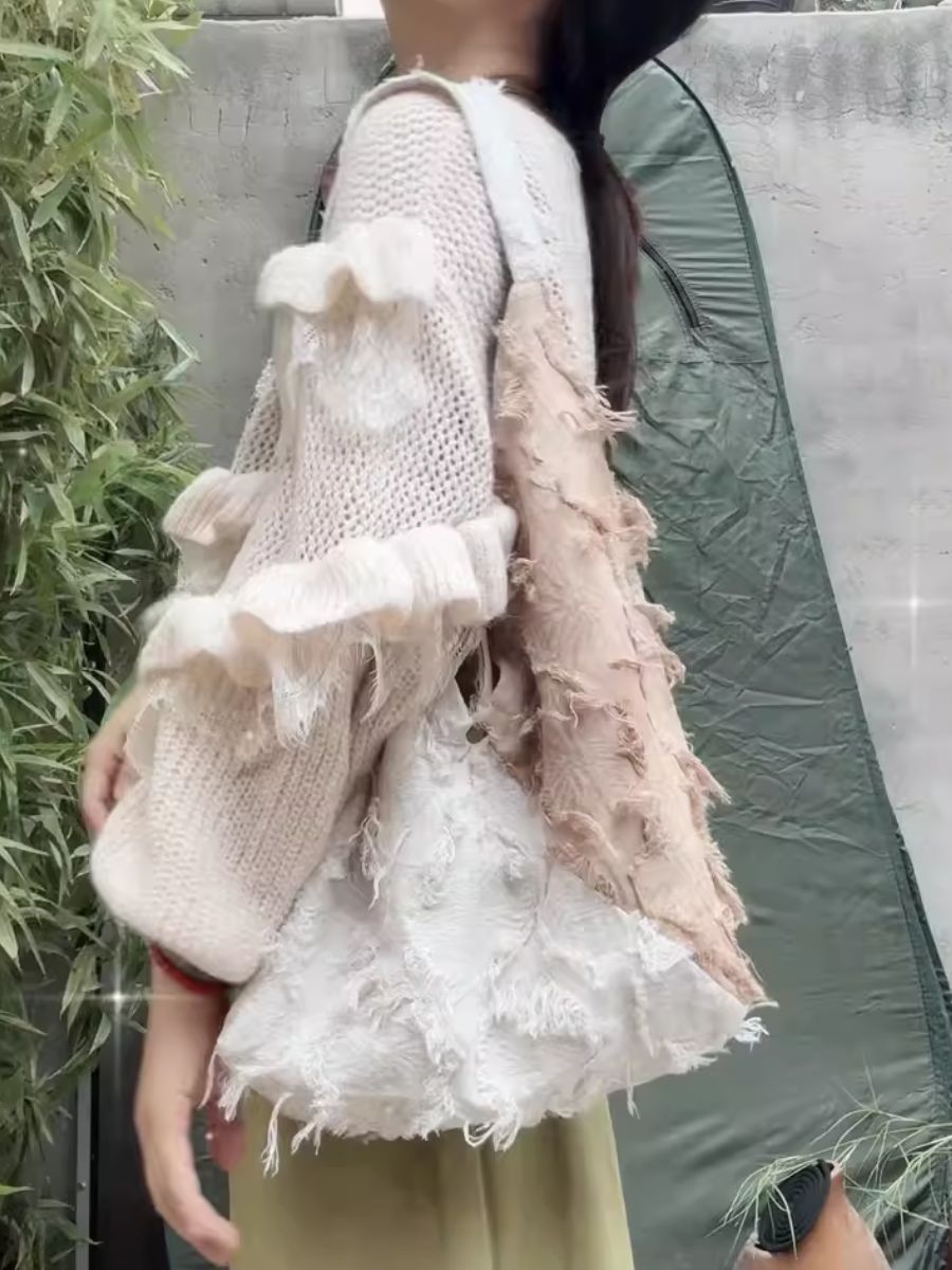 Retro Spliced Tassel Shoulder Bag