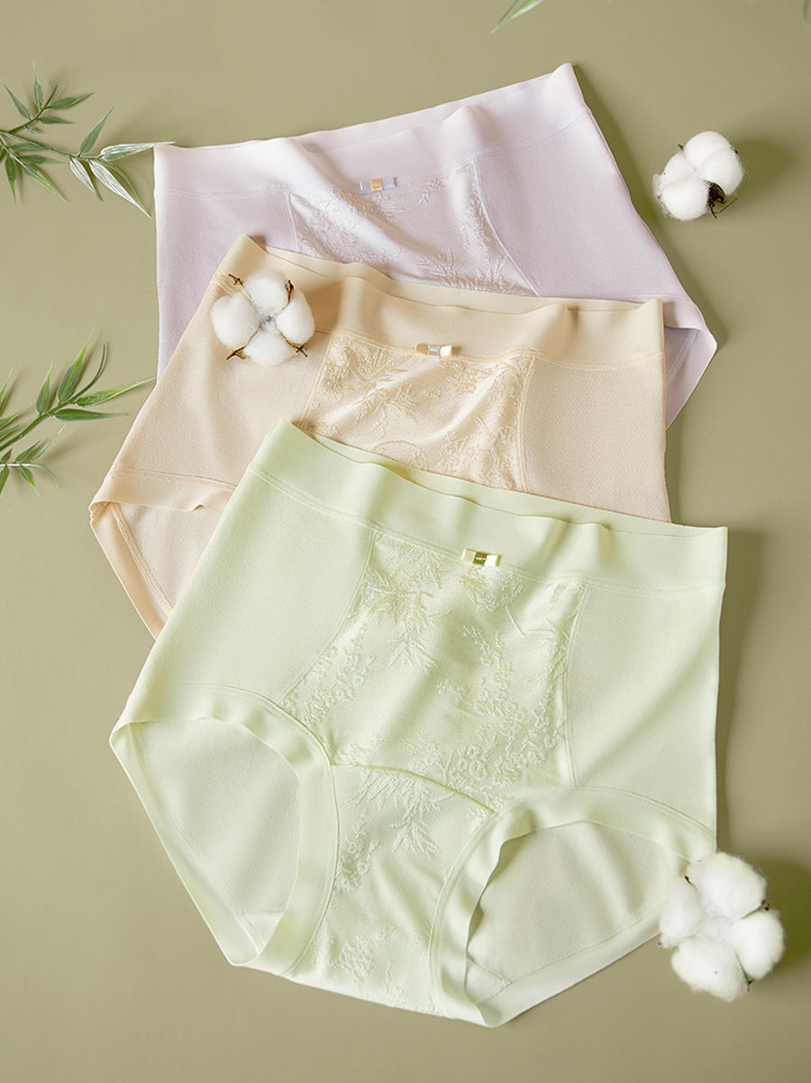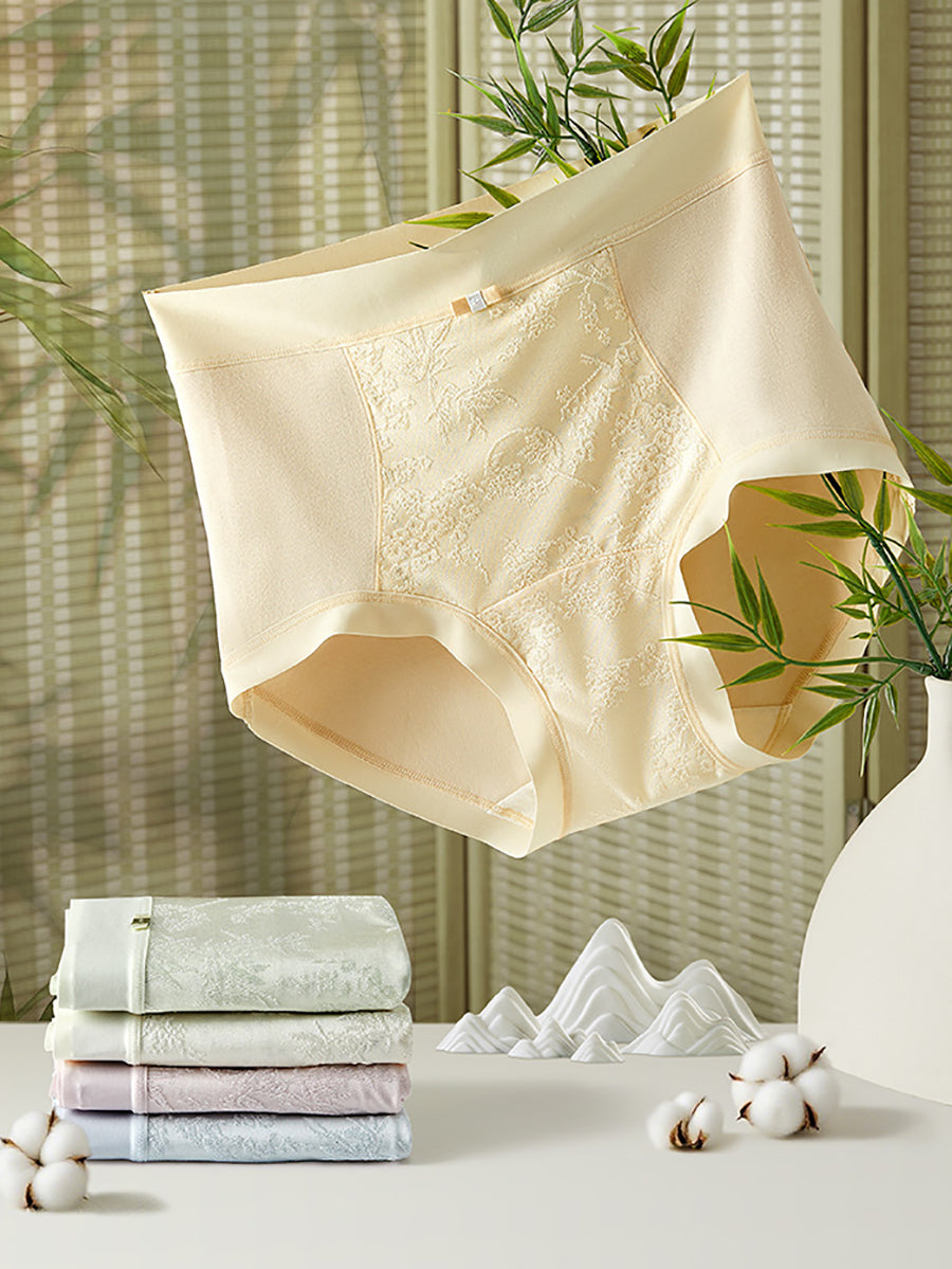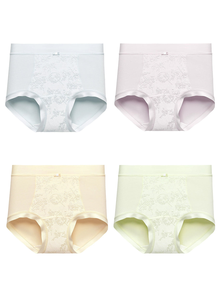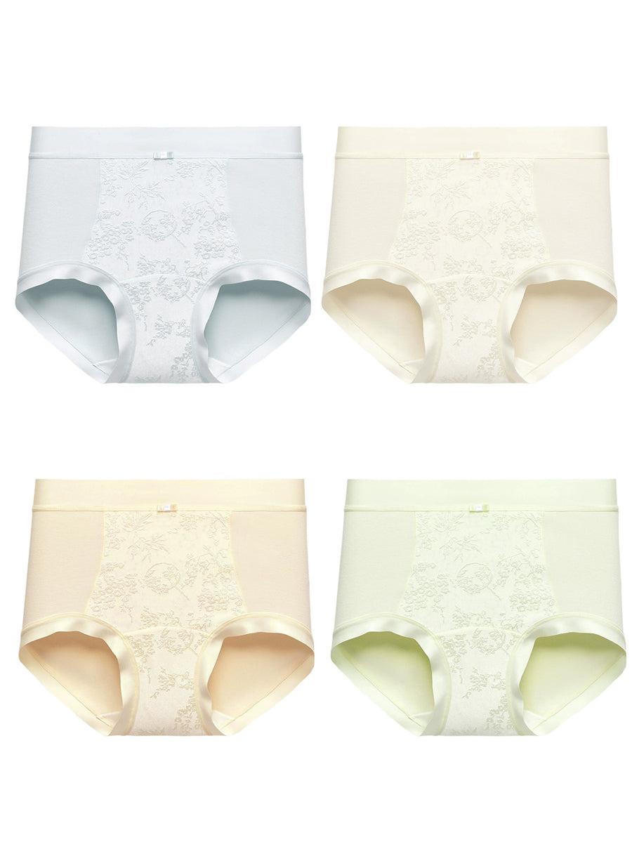 4 Pieces Women Artsy Flower Jacquard High Waist Underwear