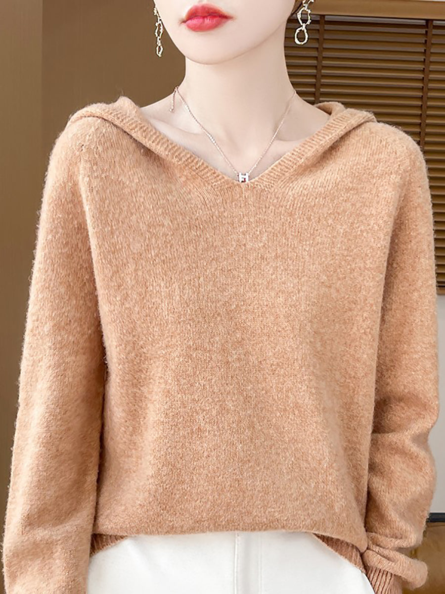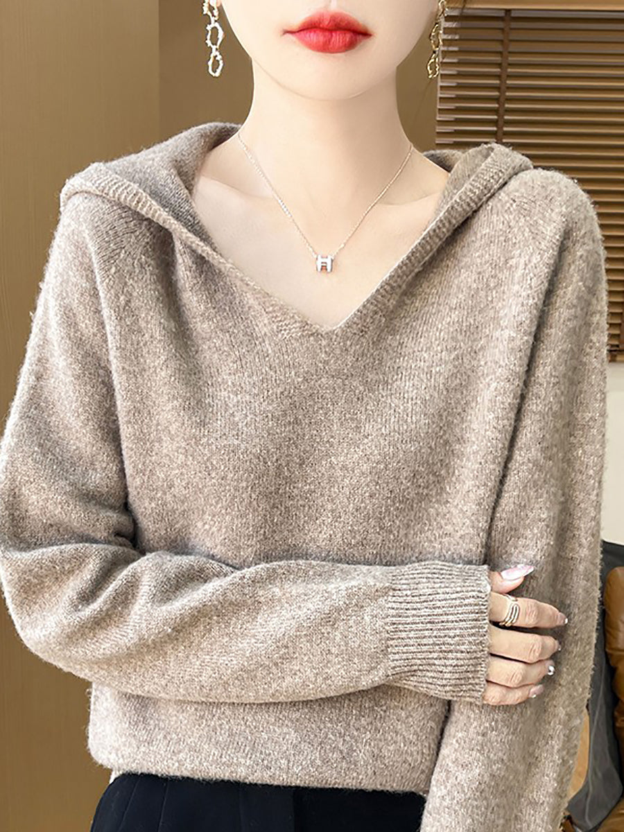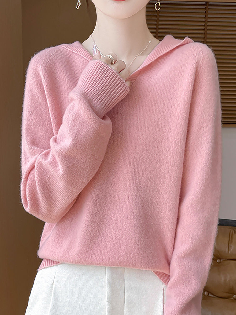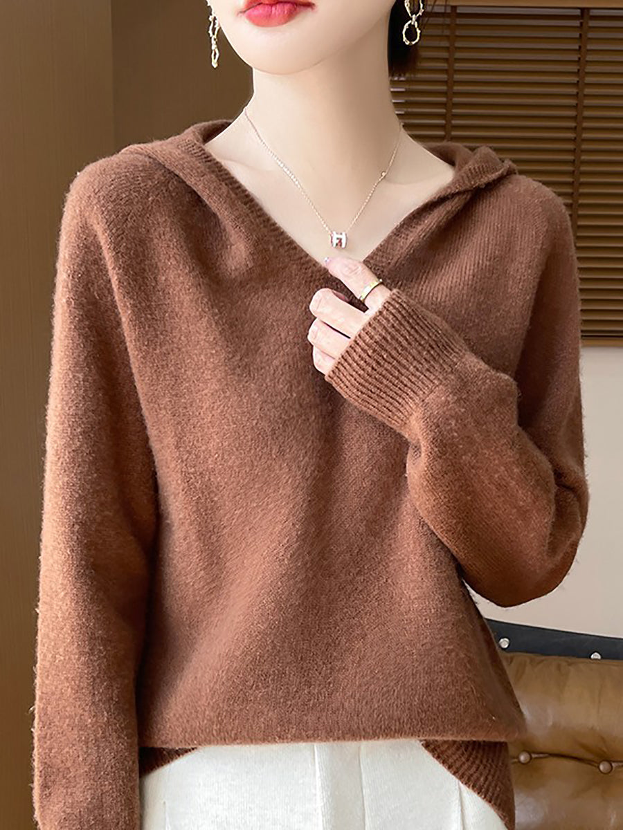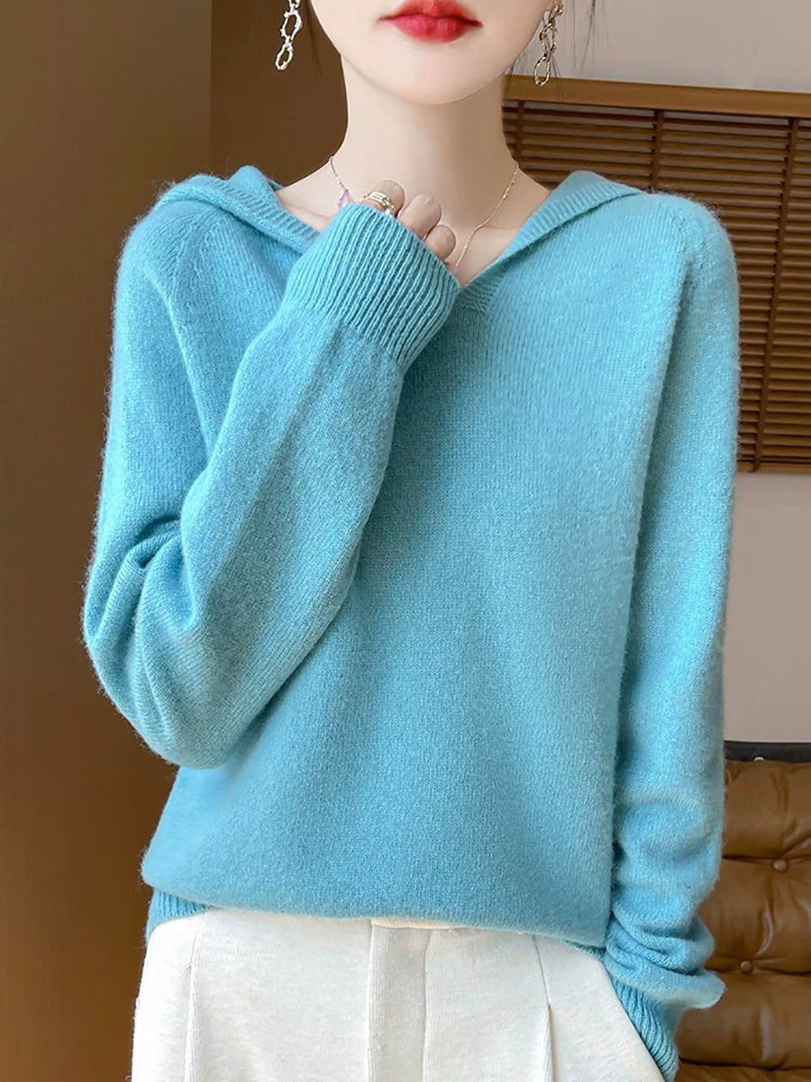 Women Autumn Artsy Pure Color Hooded Sweater