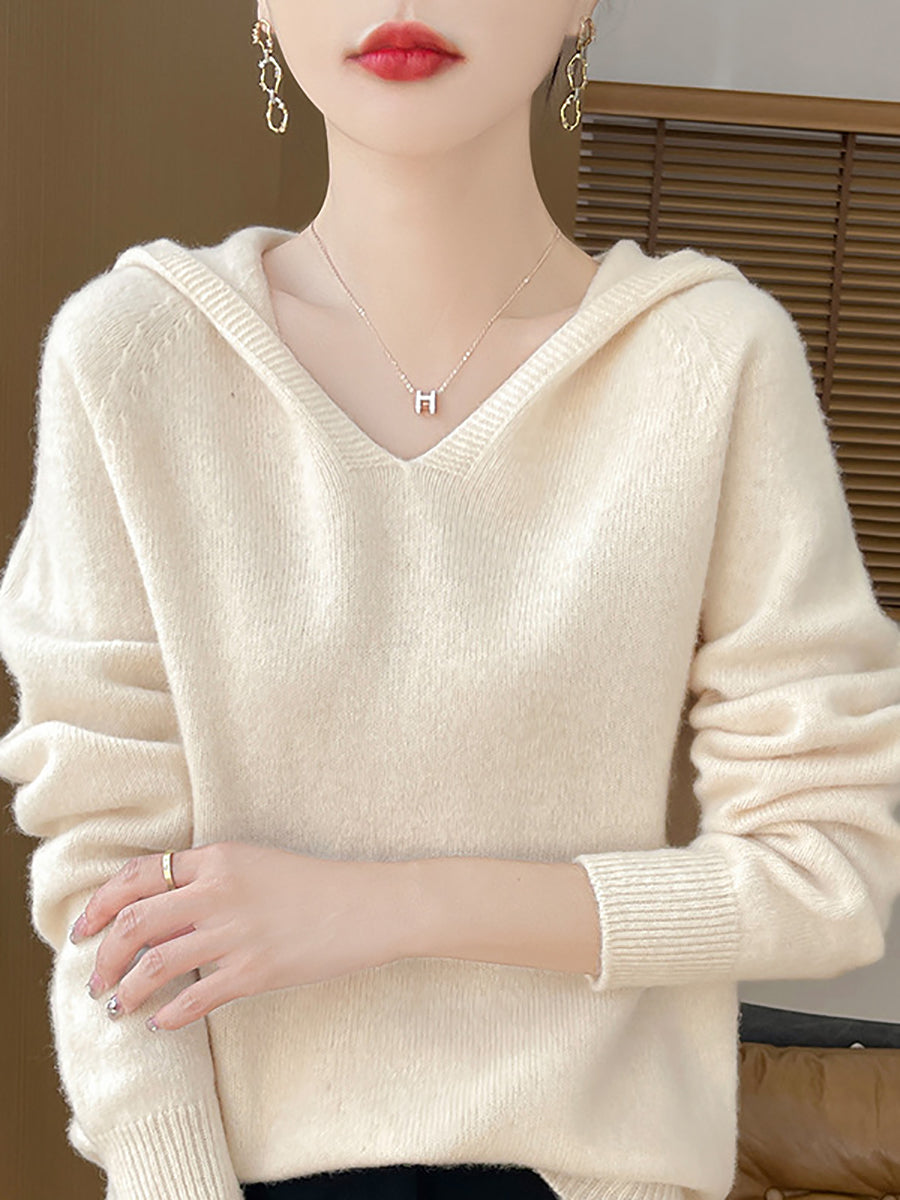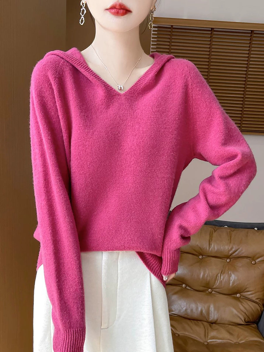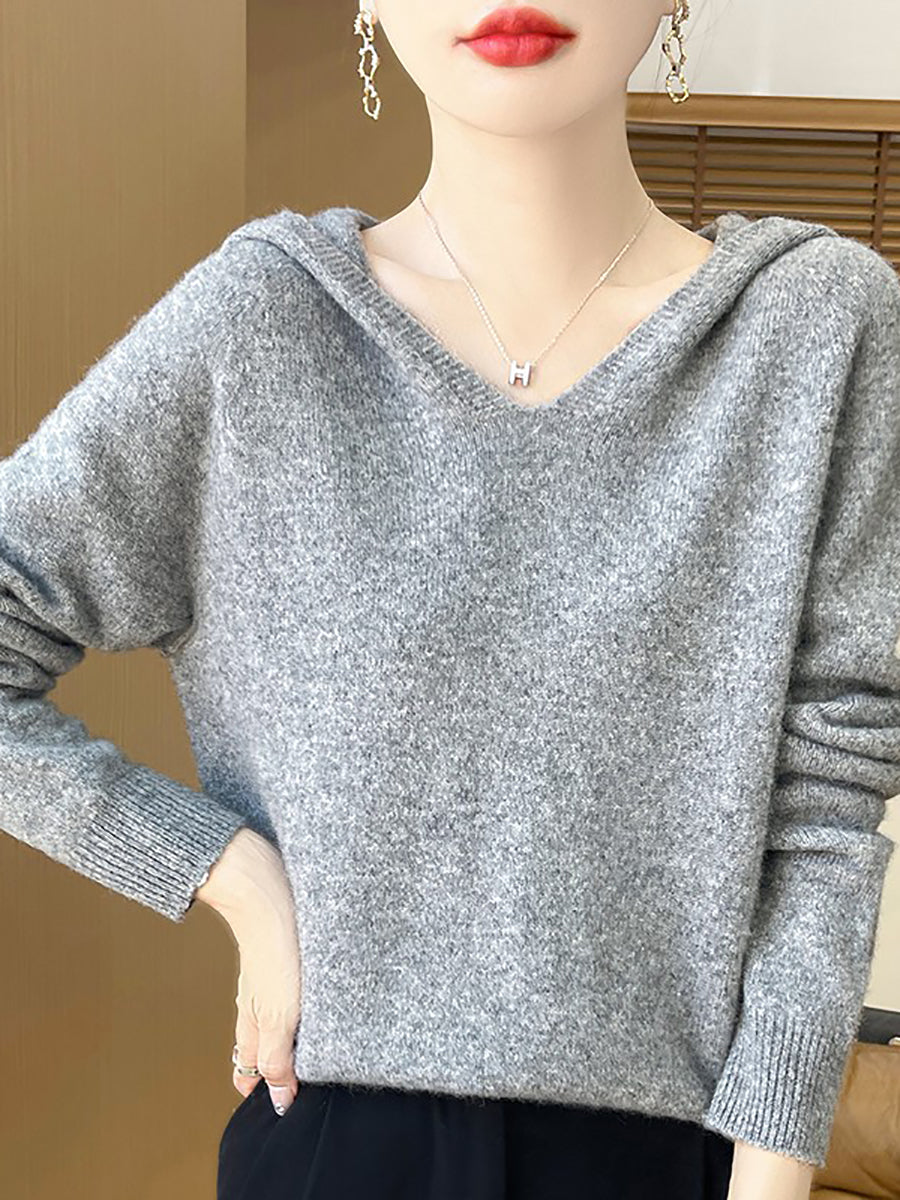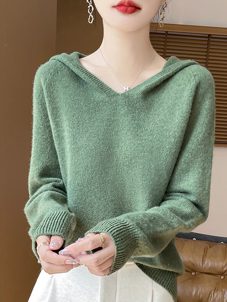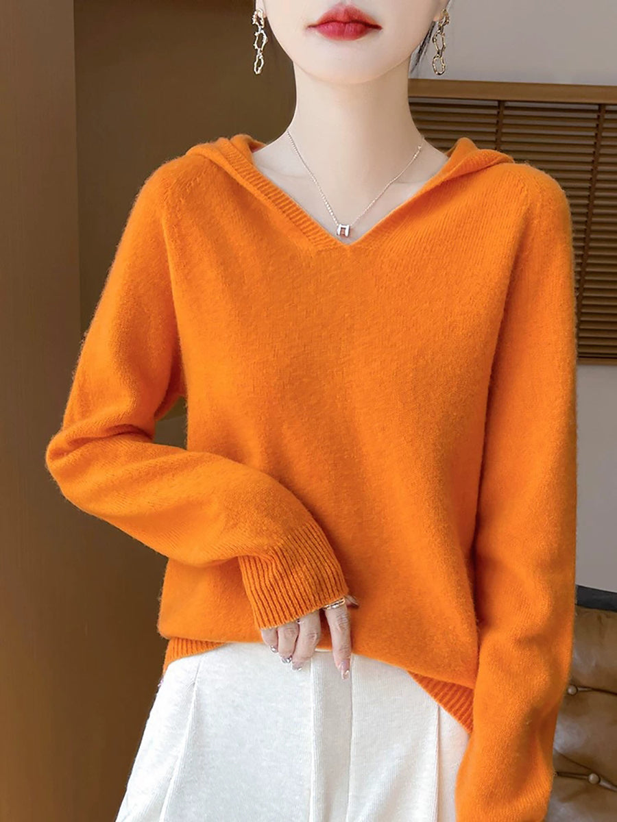 Women Autumn Artsy Pure Color Hooded Sweater