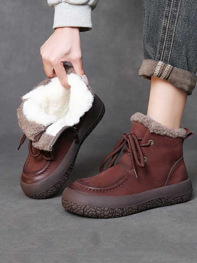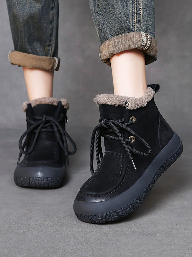 Women Vintage Pure Color Fleece-lined Ankle Boots