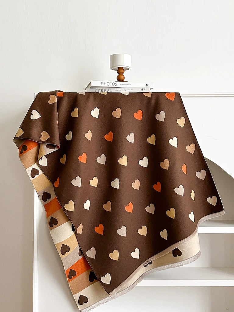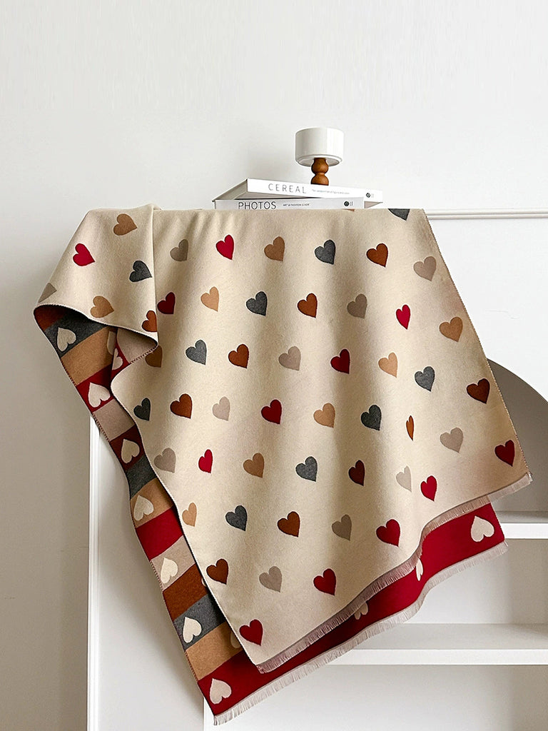 Women Fashion Heart Stripe Warm Shawl Scarf