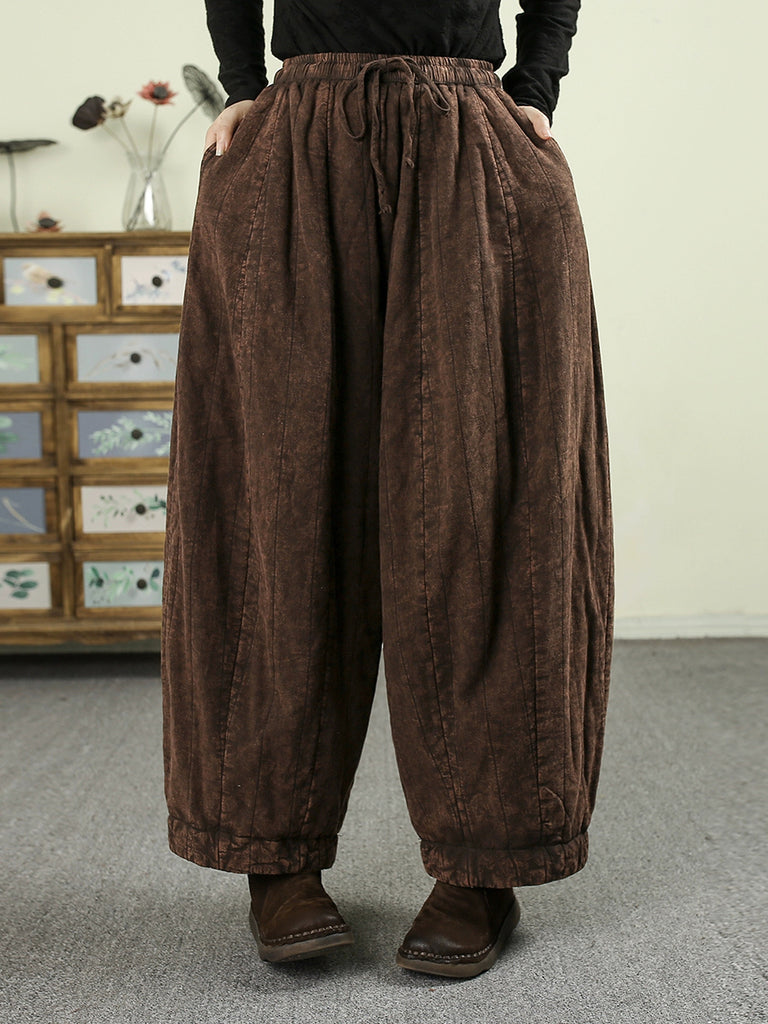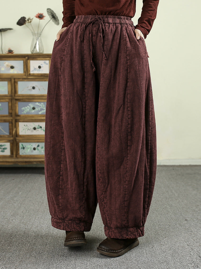 Women Winter Vintage Pure Color Ramie Padded Harem Pants