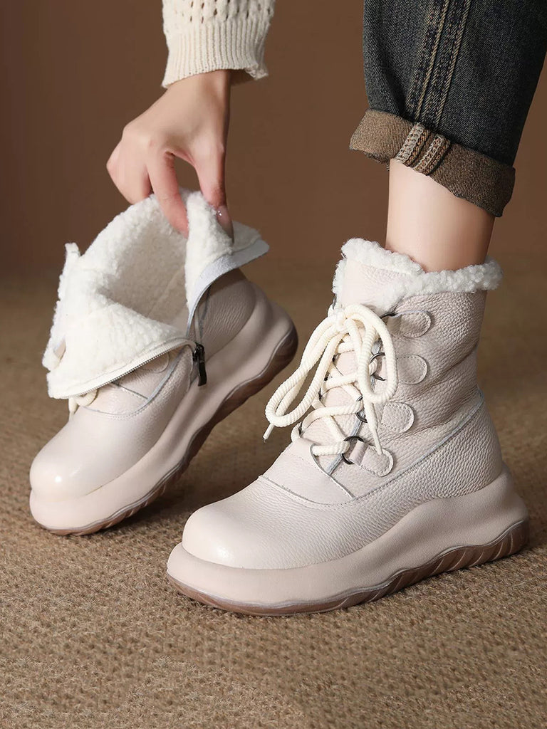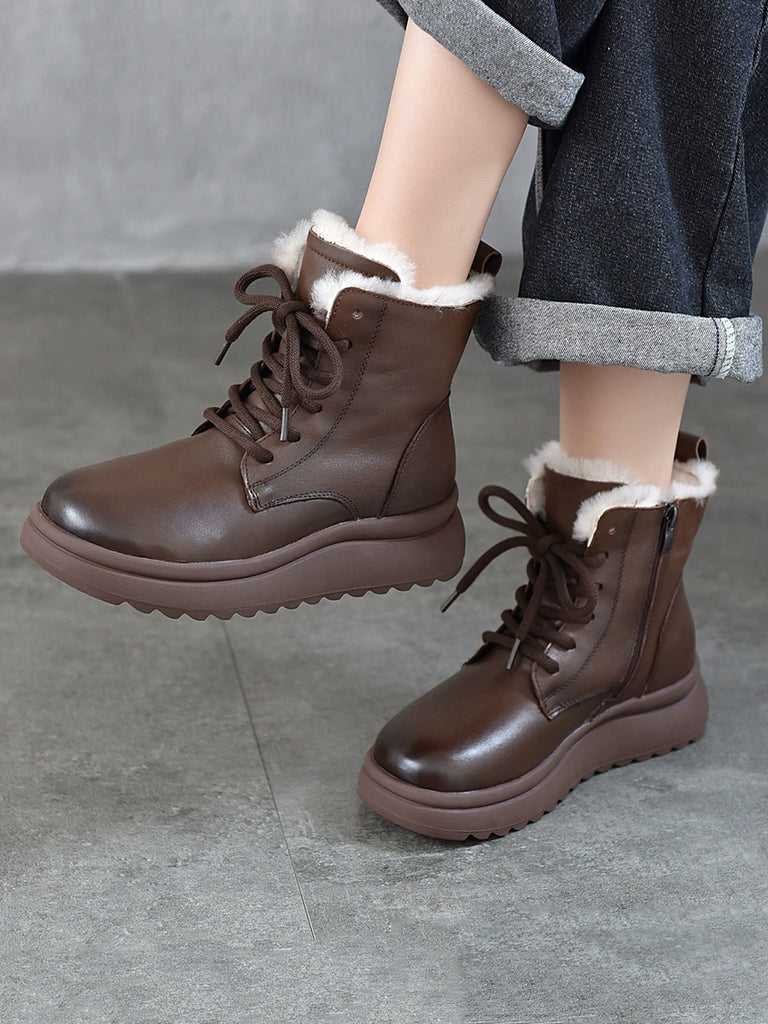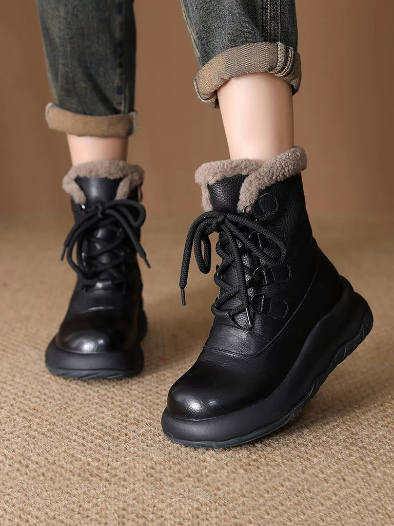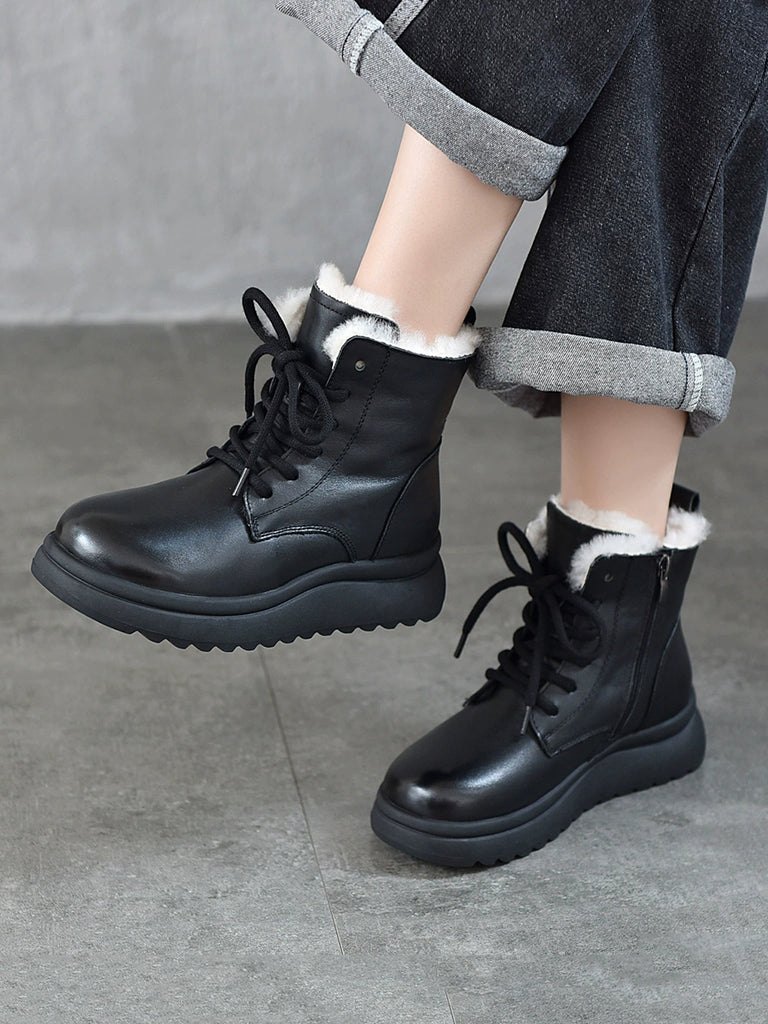 Women Winter Genuine Leather Fleece-lined Platform Boots