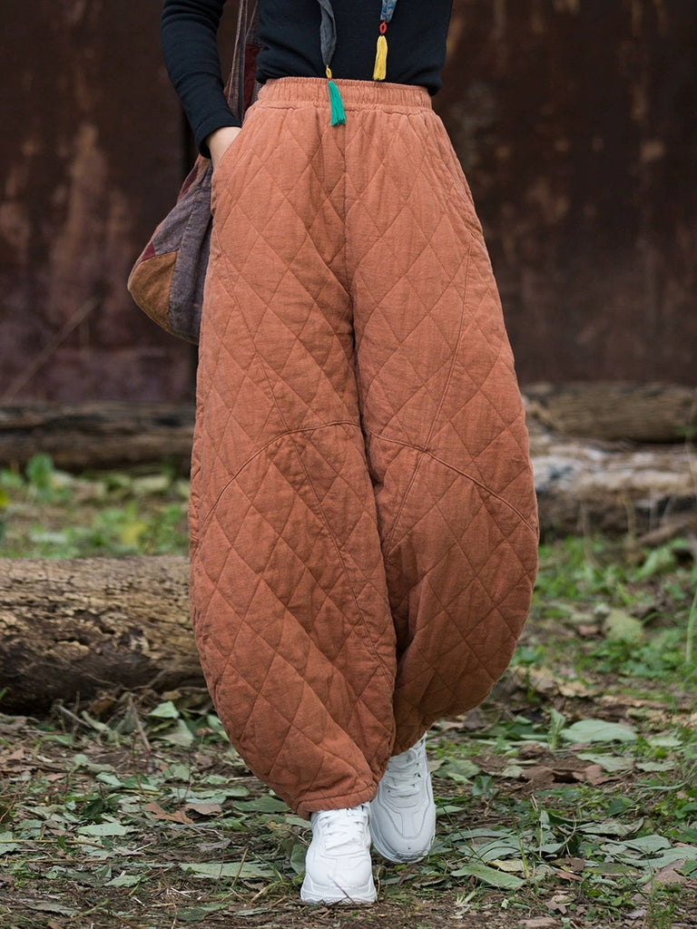 Women Winter Vintage Pure Color Cotton Padded Harem Pants