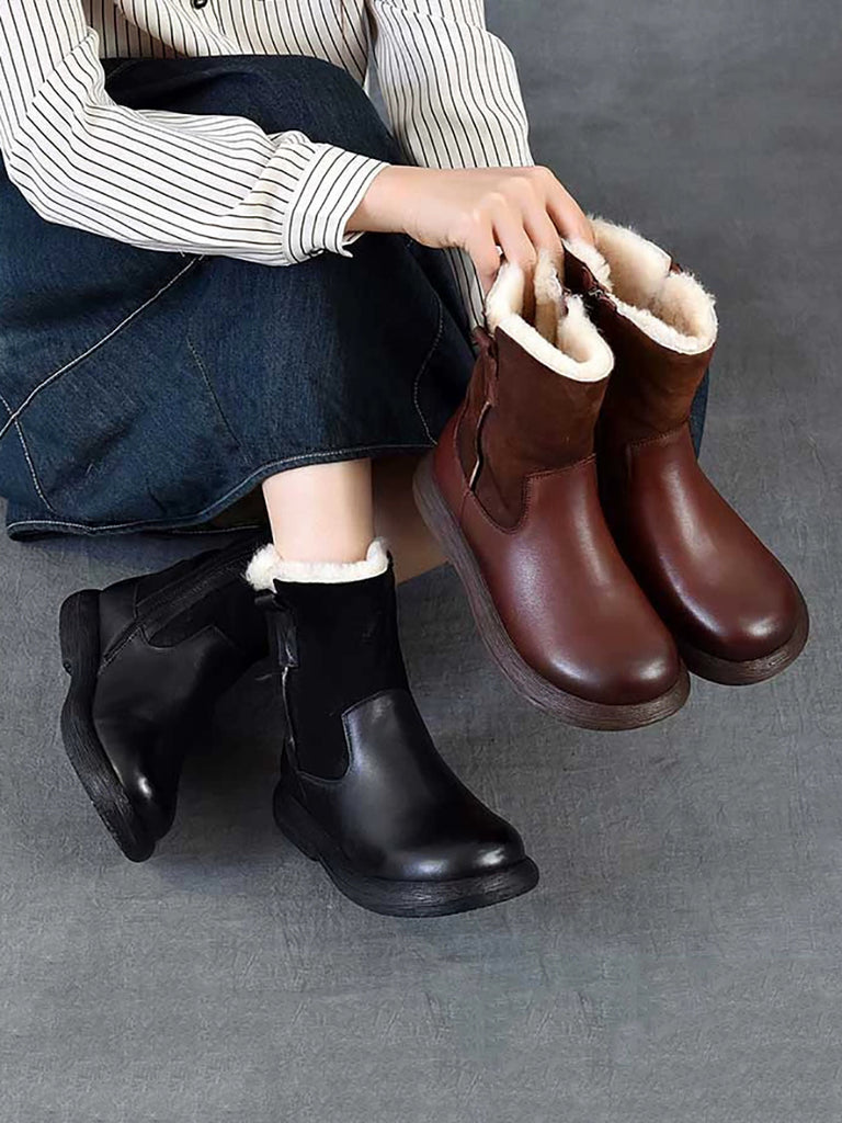 Women Winter Vintage Leather Spliced Fleece-lined Boots