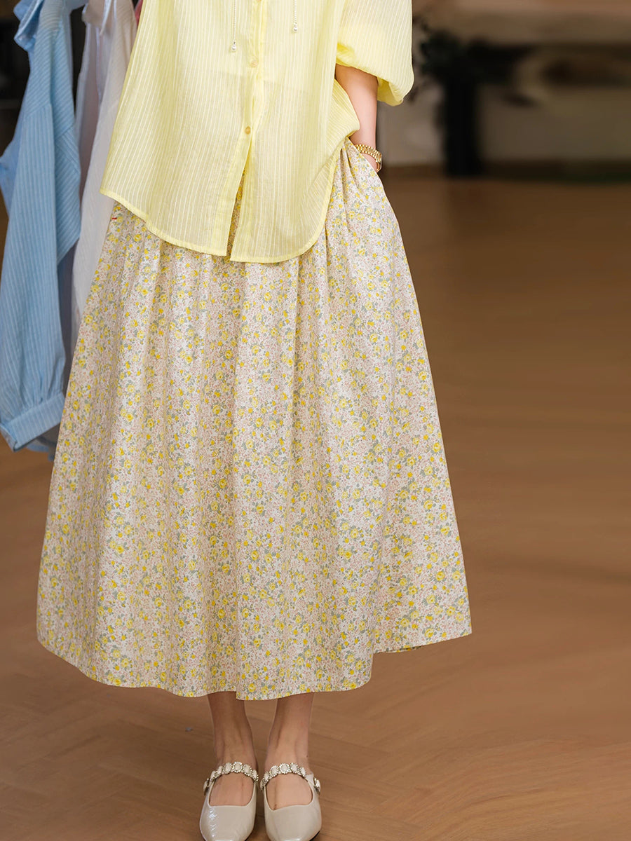 Women Summer Artsy Floral 100%Cotton Skirt