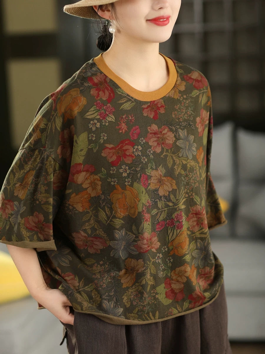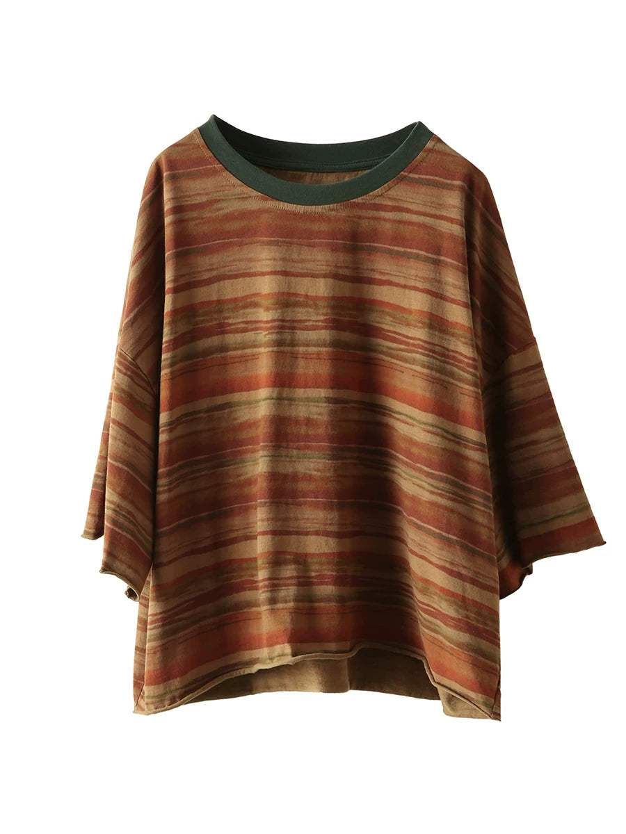 Women Summer Artsy Stripe O-Neck 100%Cotton T-Shirt