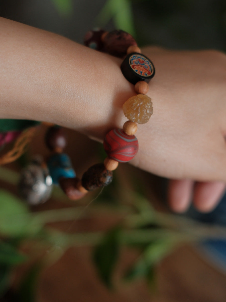 Women Ethnic Wooden Bead Handmade Tassel Bracelet