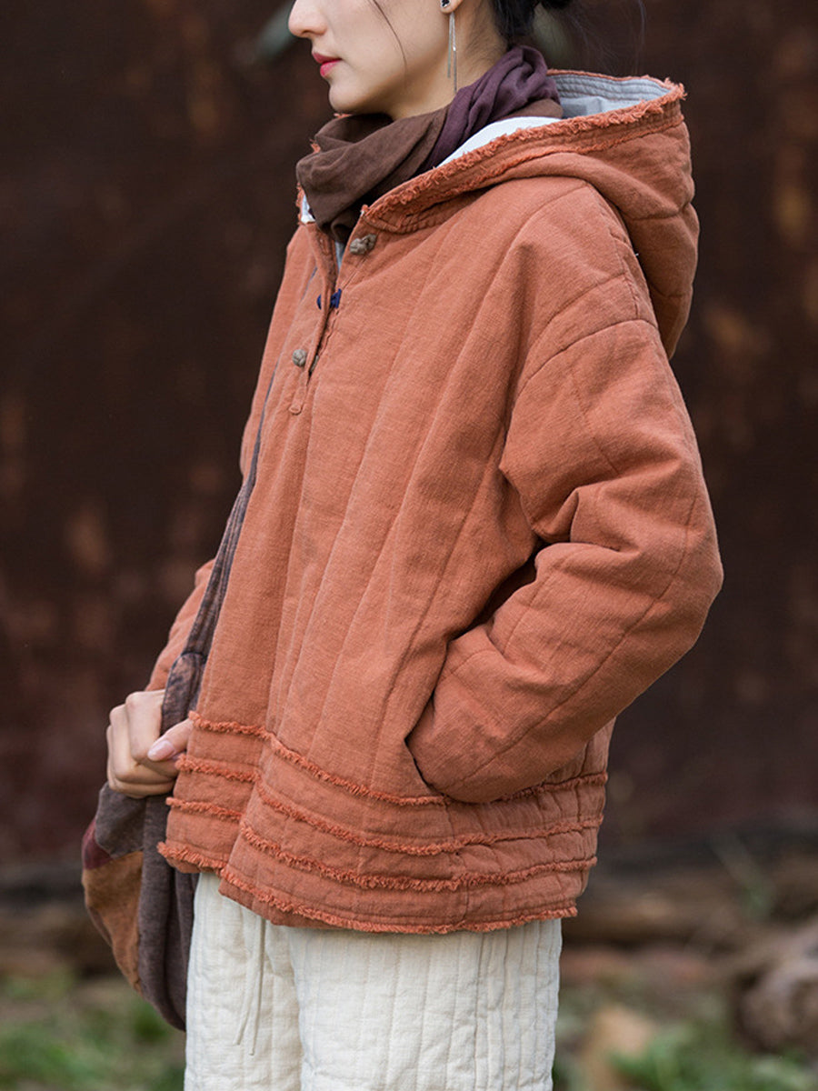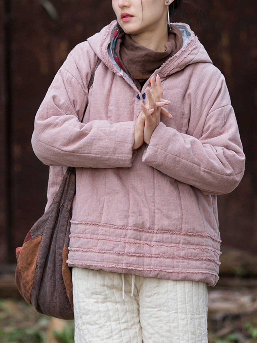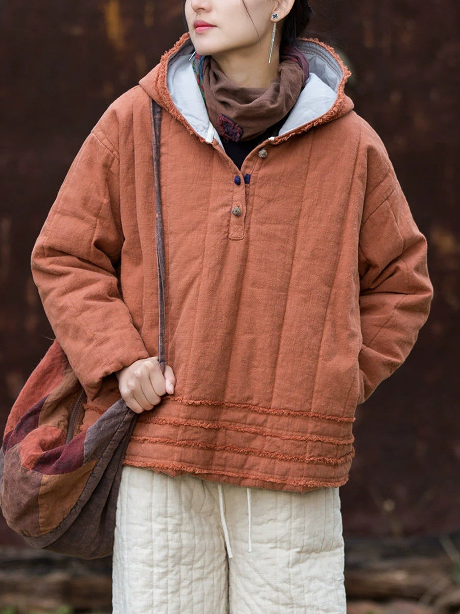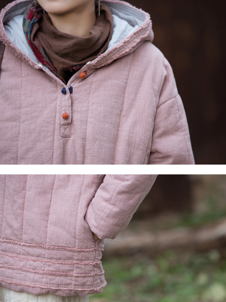 Crafted from premium ramie fabric, this winter essential combines timeless design with practical functionality. The hooded silhouette and full-length raglan sleeves deliver a retro aesthetic while providing superior warmth during colder months. Its solid color palette ensures versatile styling across your autumn and winter wardrobe, making it an indispensable layering piece for transitional seasons.