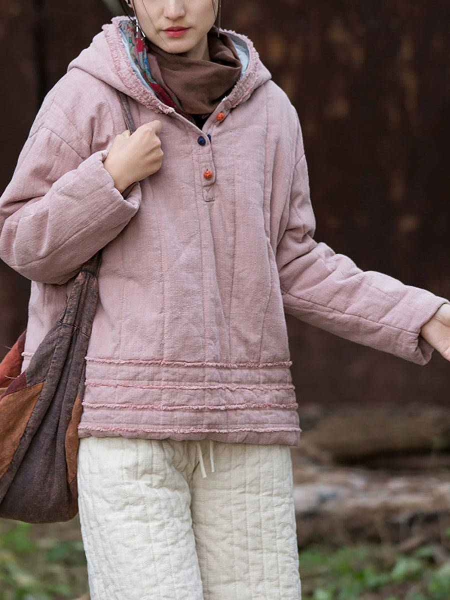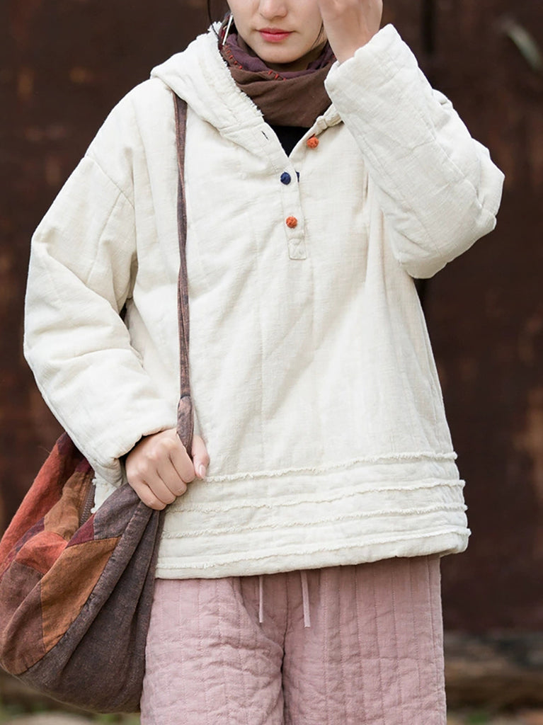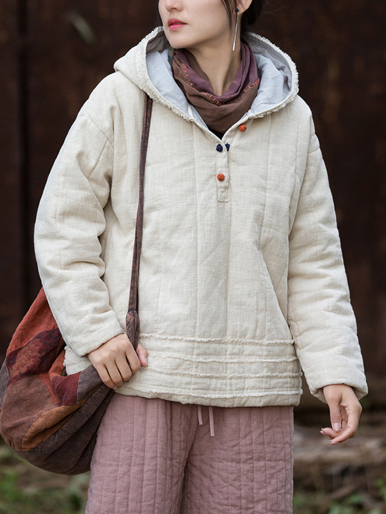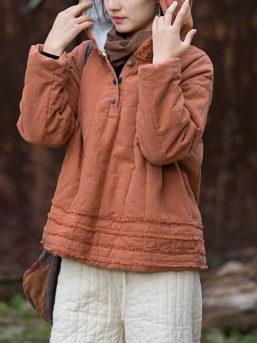 Crafted from premium ramie fabric, this winter essential combines timeless design with practical functionality. The hooded silhouette and full-length raglan sleeves deliver a retro aesthetic while providing superior warmth during colder months. Its solid color palette ensures versatile styling across your autumn and winter wardrobe, making it an indispensable layering piece for transitional seasons.