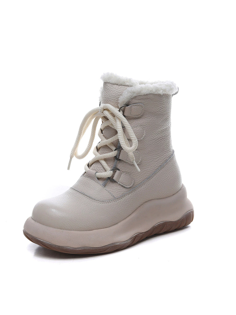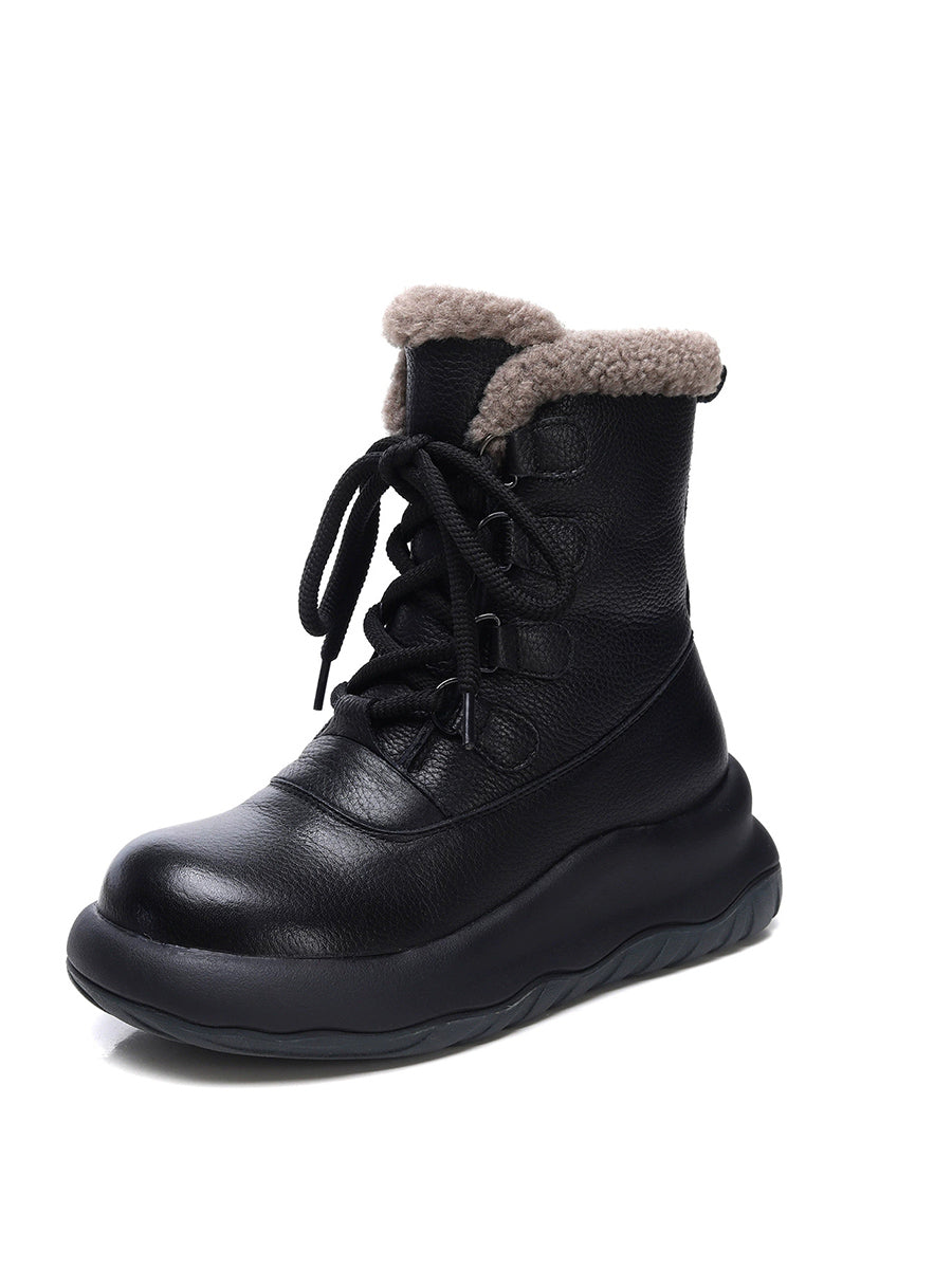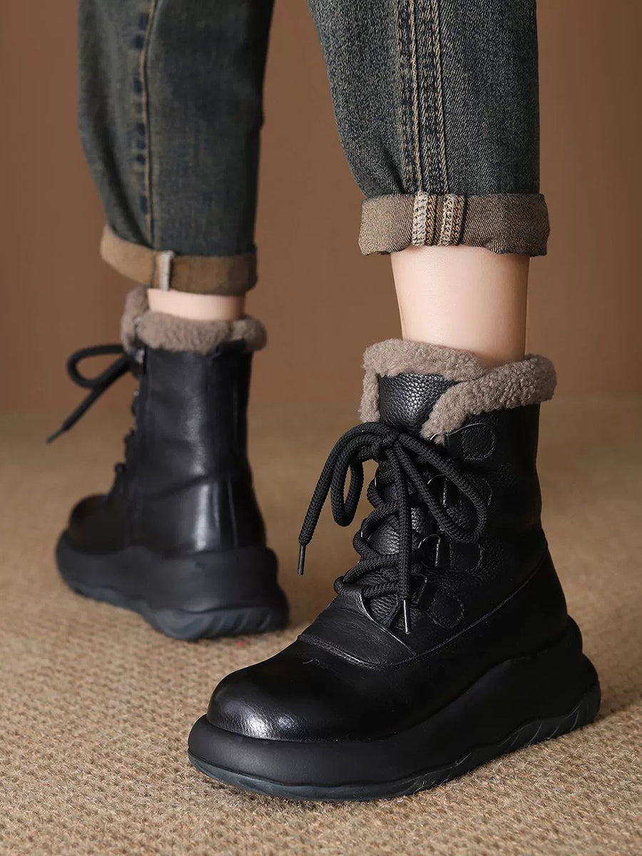 Women Winter Genuine Leather Fleece-lined Martin Boots
