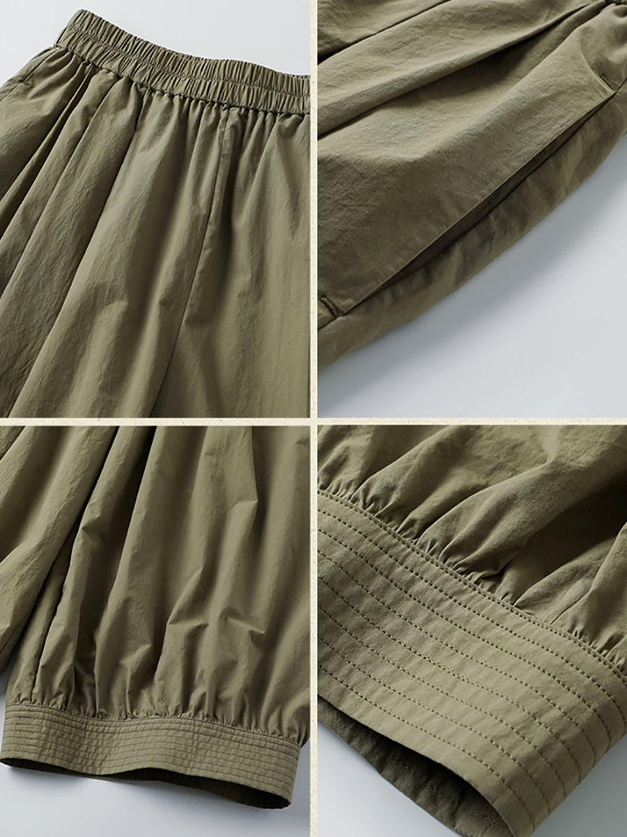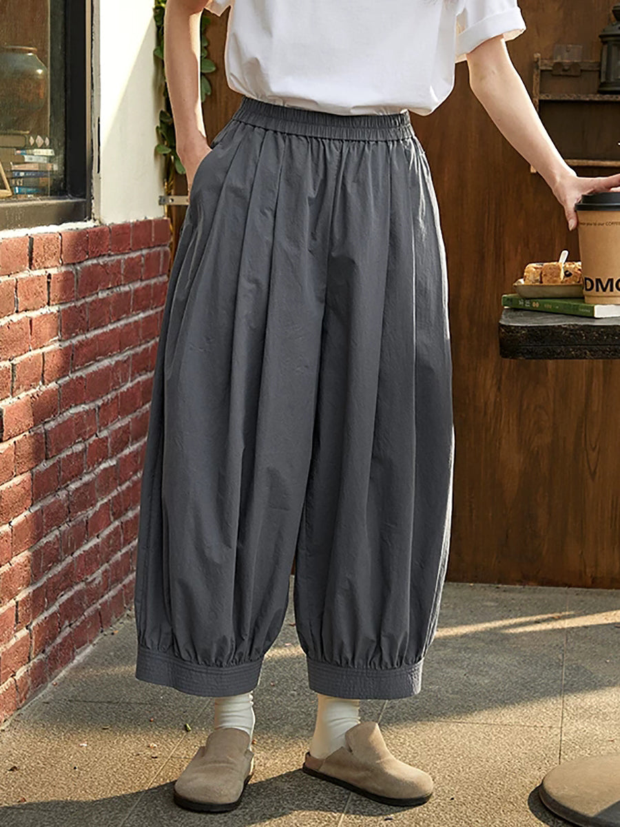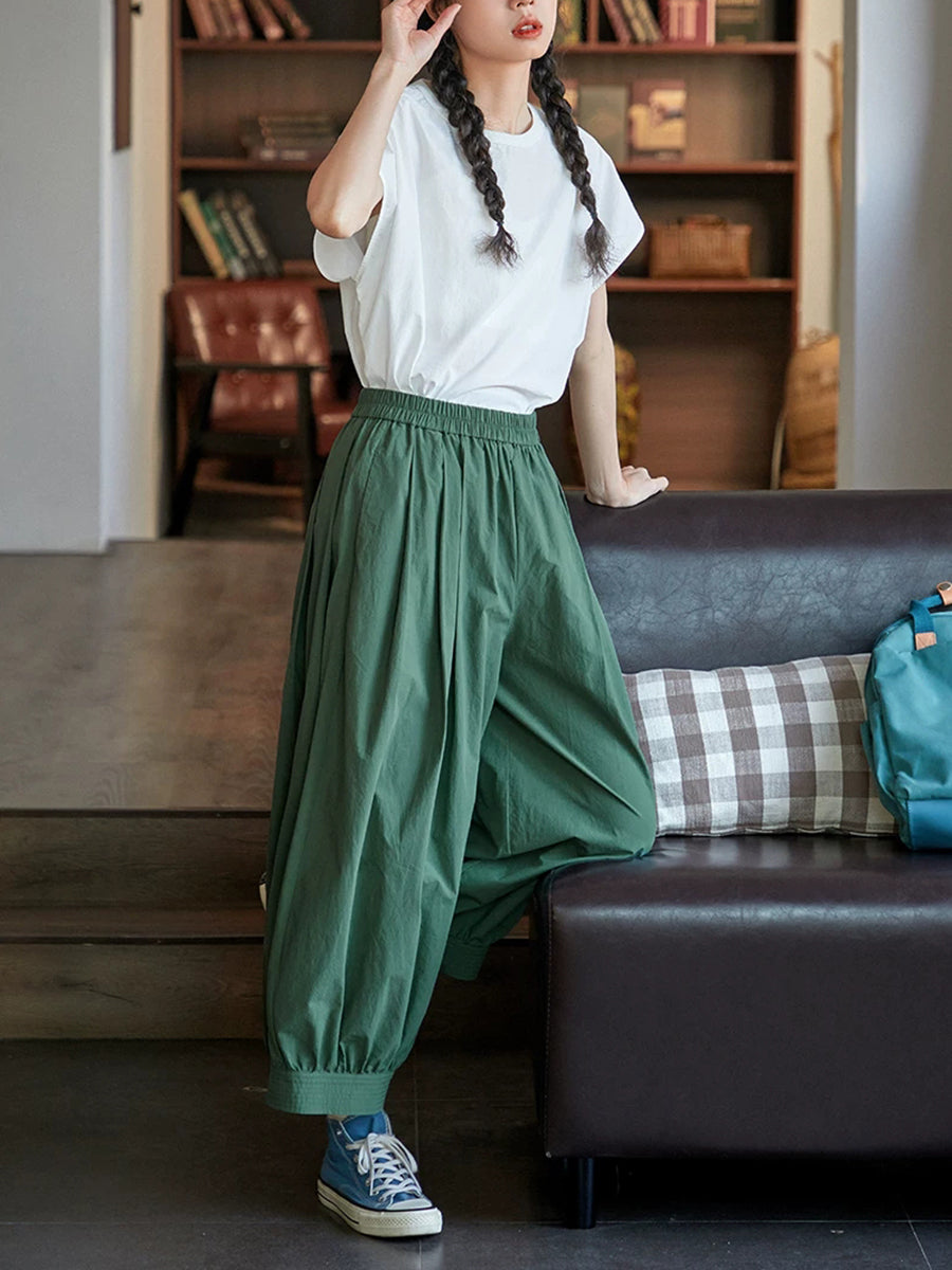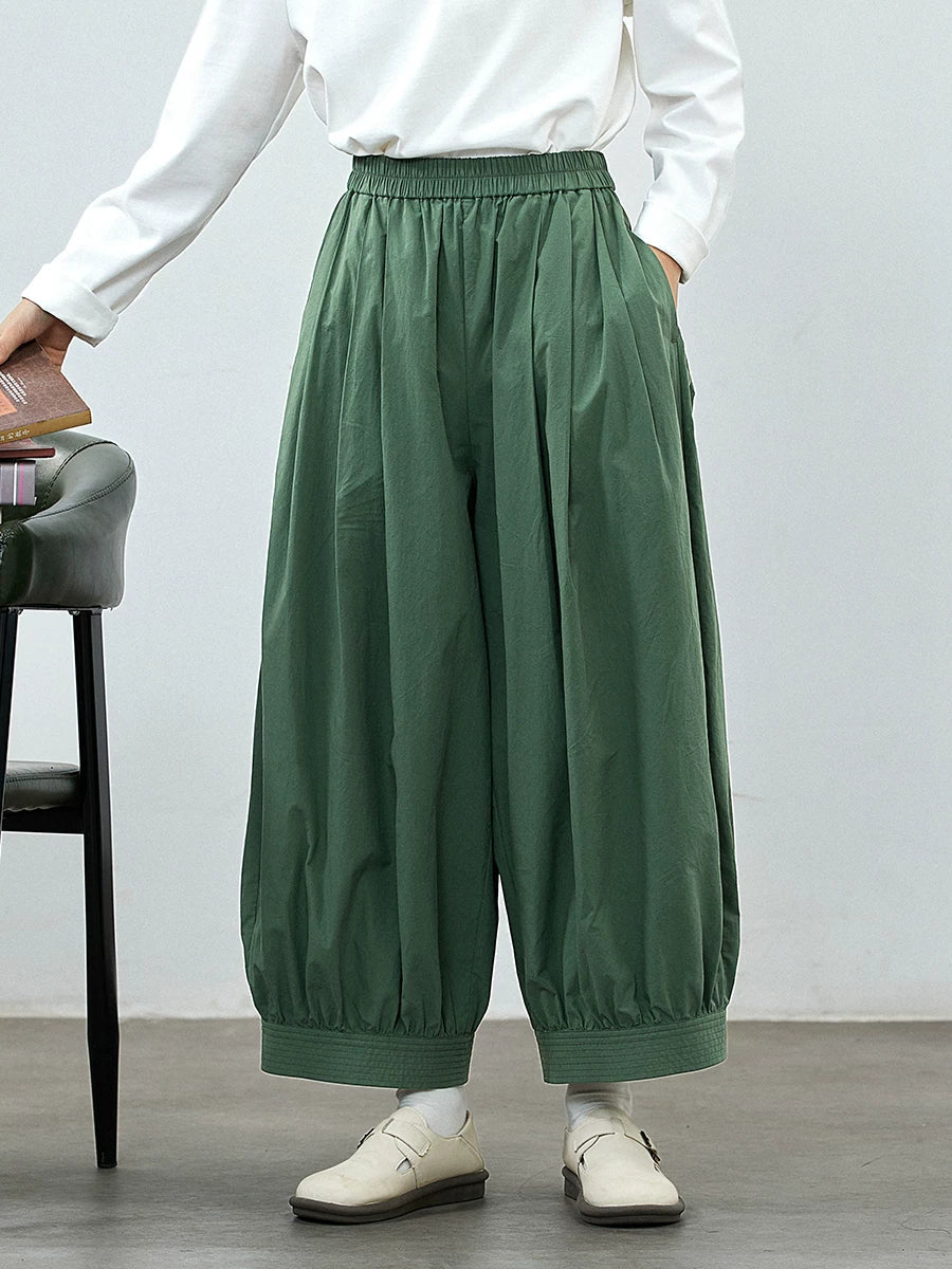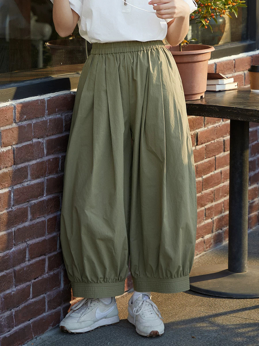 Women Spring Pure Color 100%Cotton Wide-leg Pants