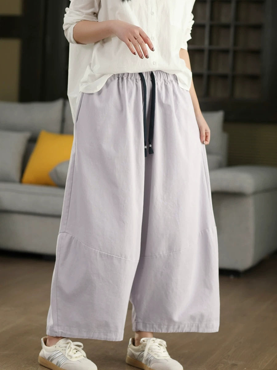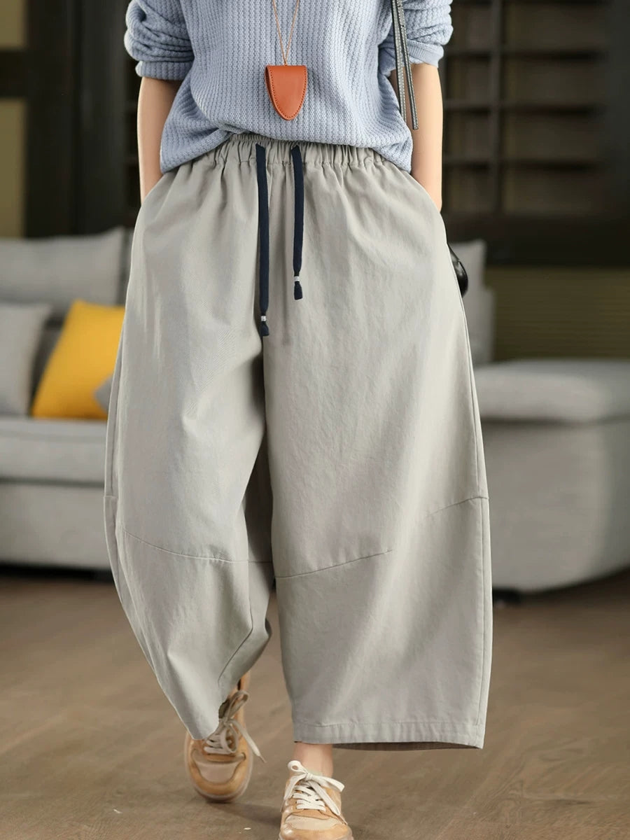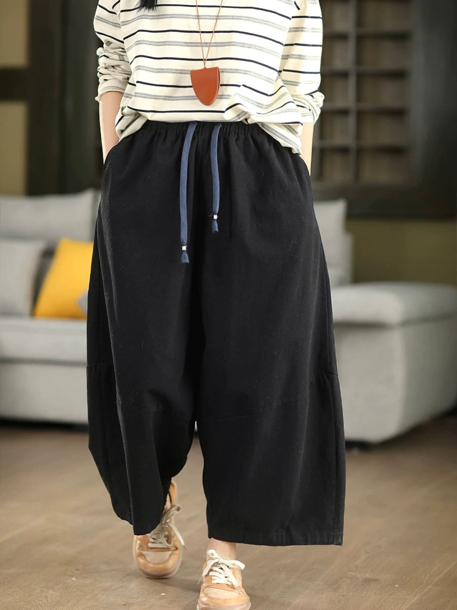 Women Winter Casual Pure Color 100%Cotton Wide-leg Pants