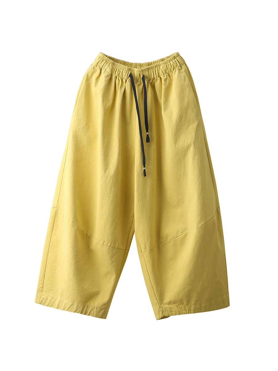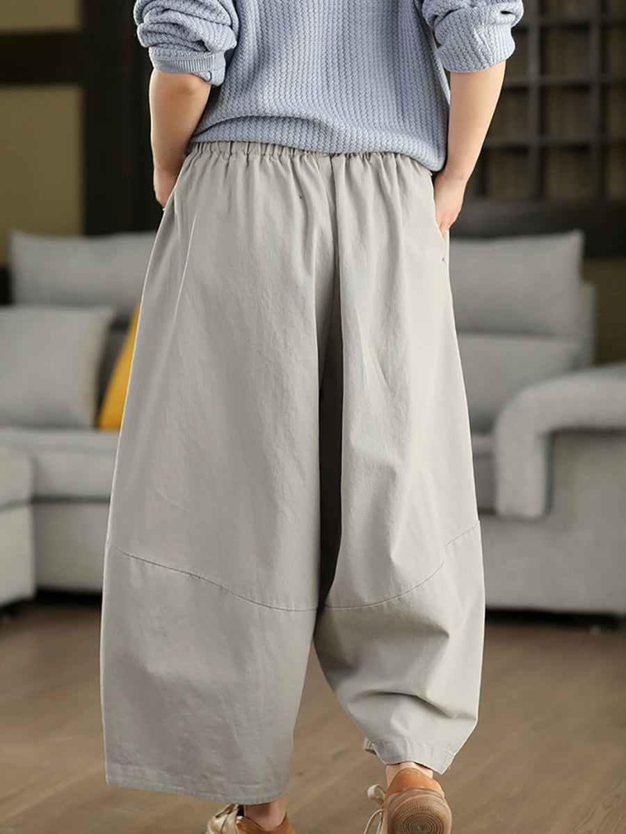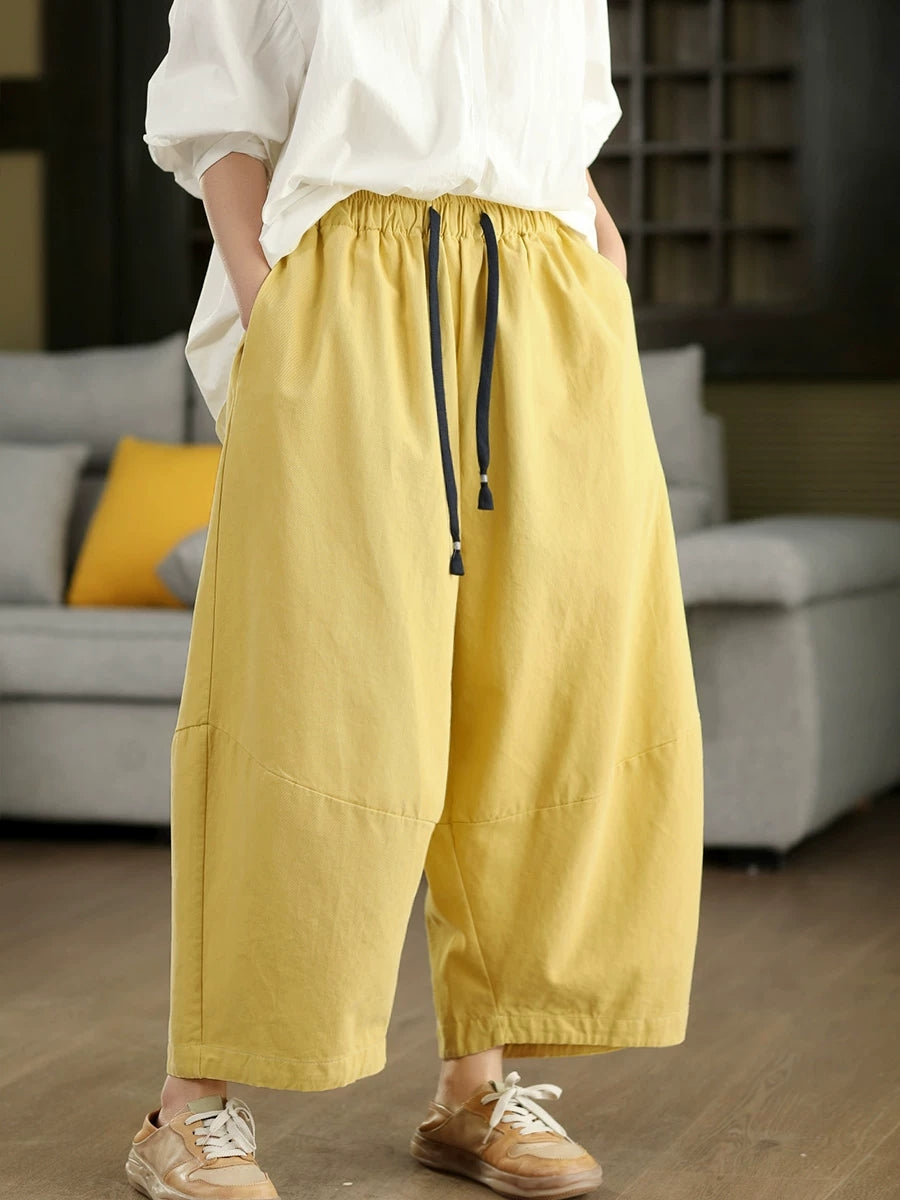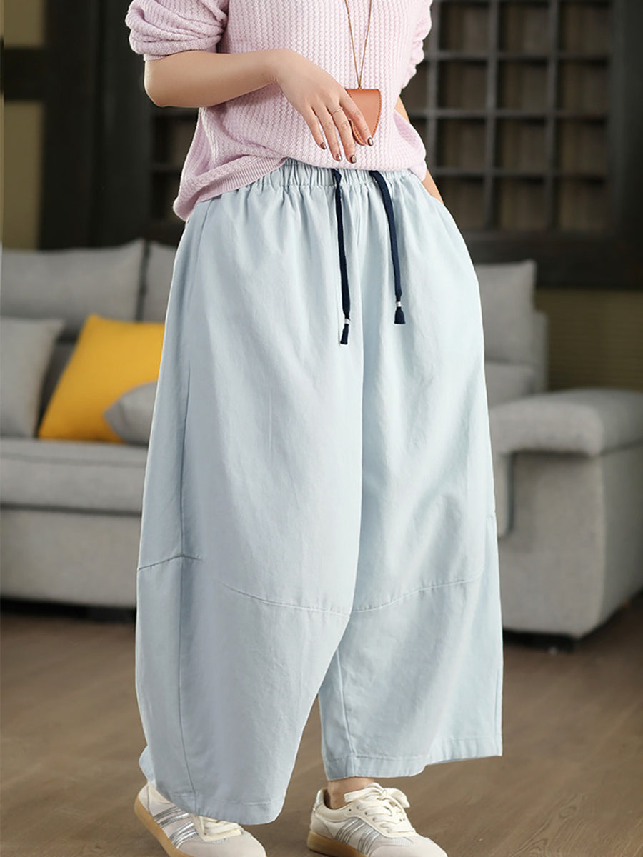Women Winter Casual Pure Color 100%Cotton Wide-leg Pants