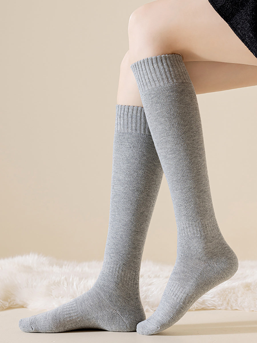4 Pairs Women Winter Casual Pure Color Calf Socks