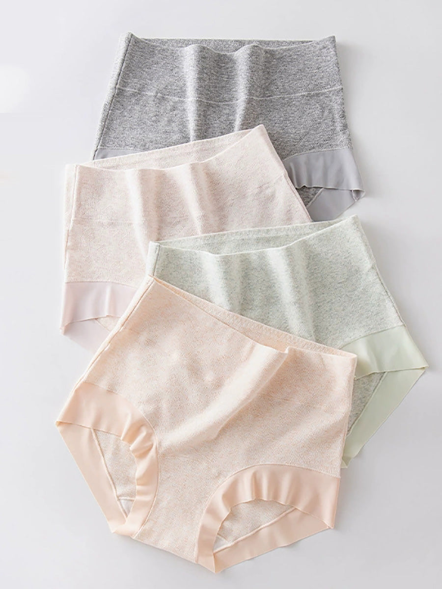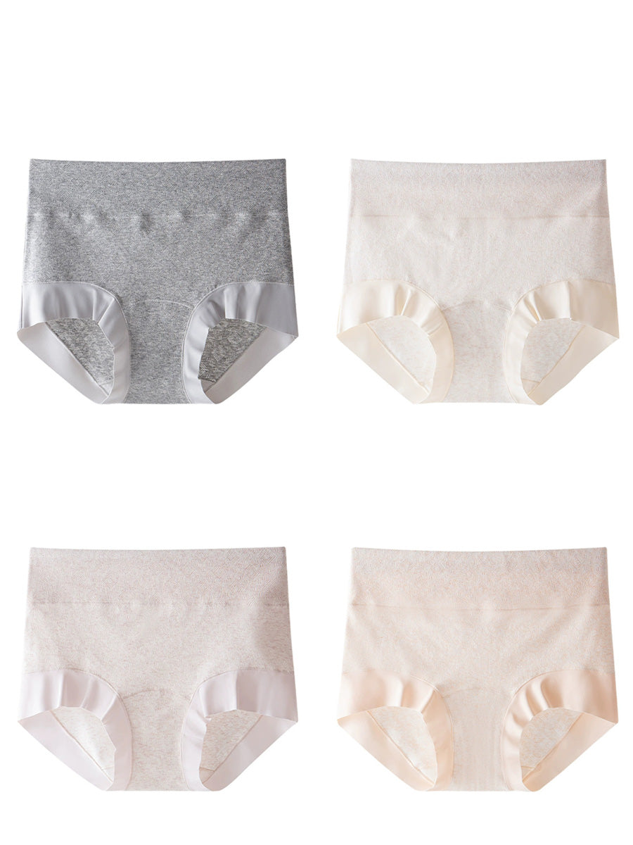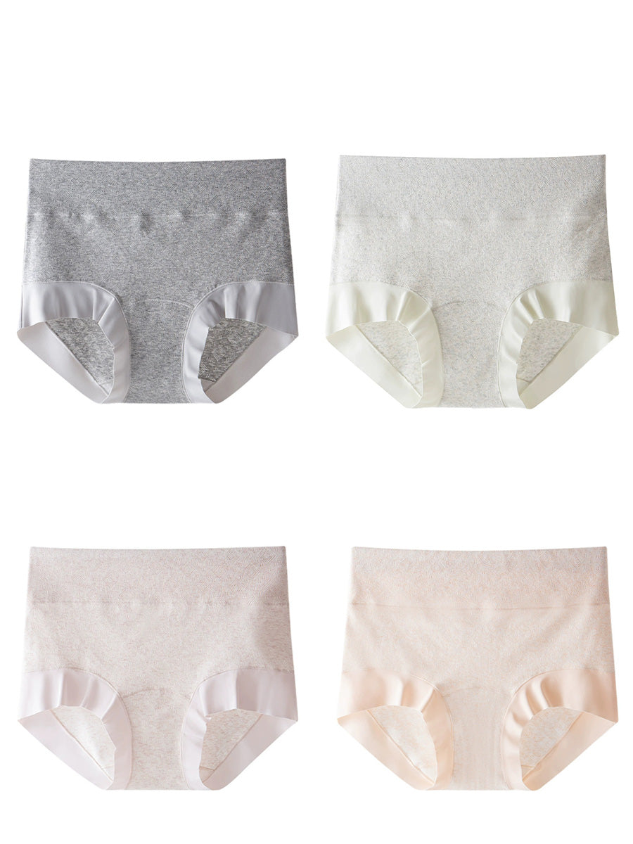 4 Pieces Women Artsy Pure Color High Waist Underwear