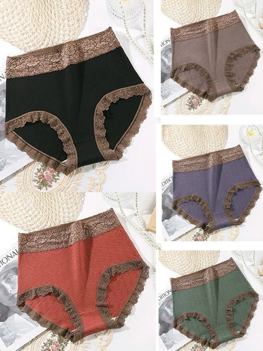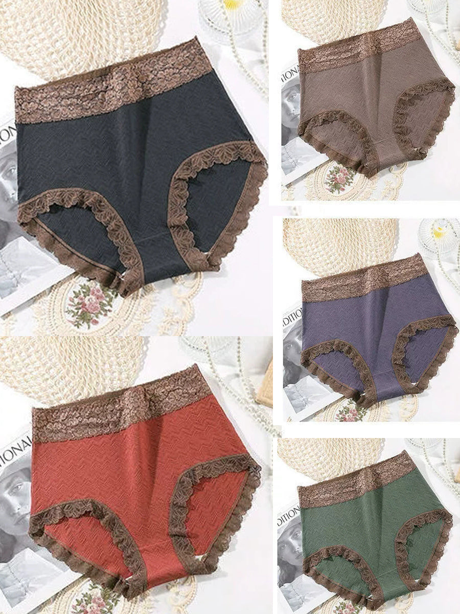 5 Pieces Women Artsy Lace Spliced High Waist Underwear