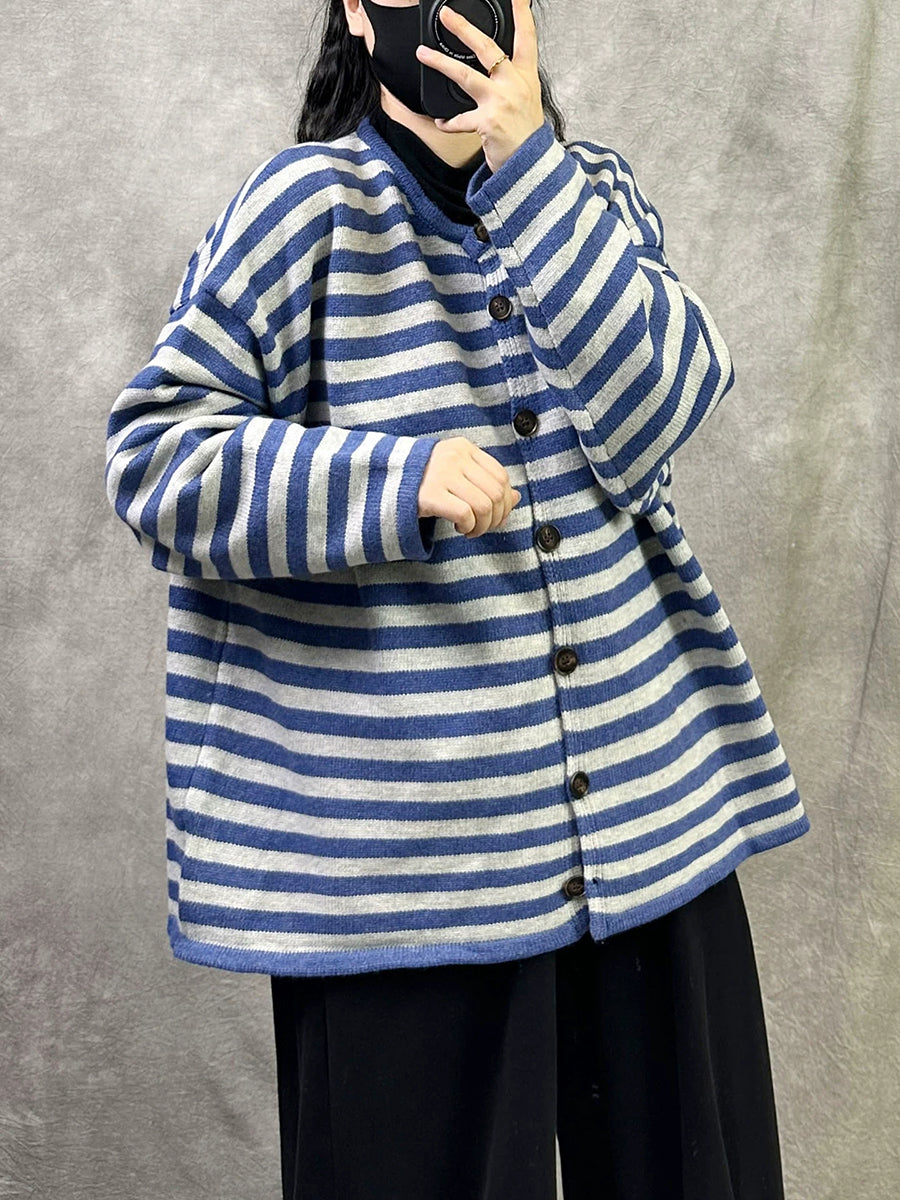 Women Artsy Spring Stripe O-Neck Knitted Cardigan