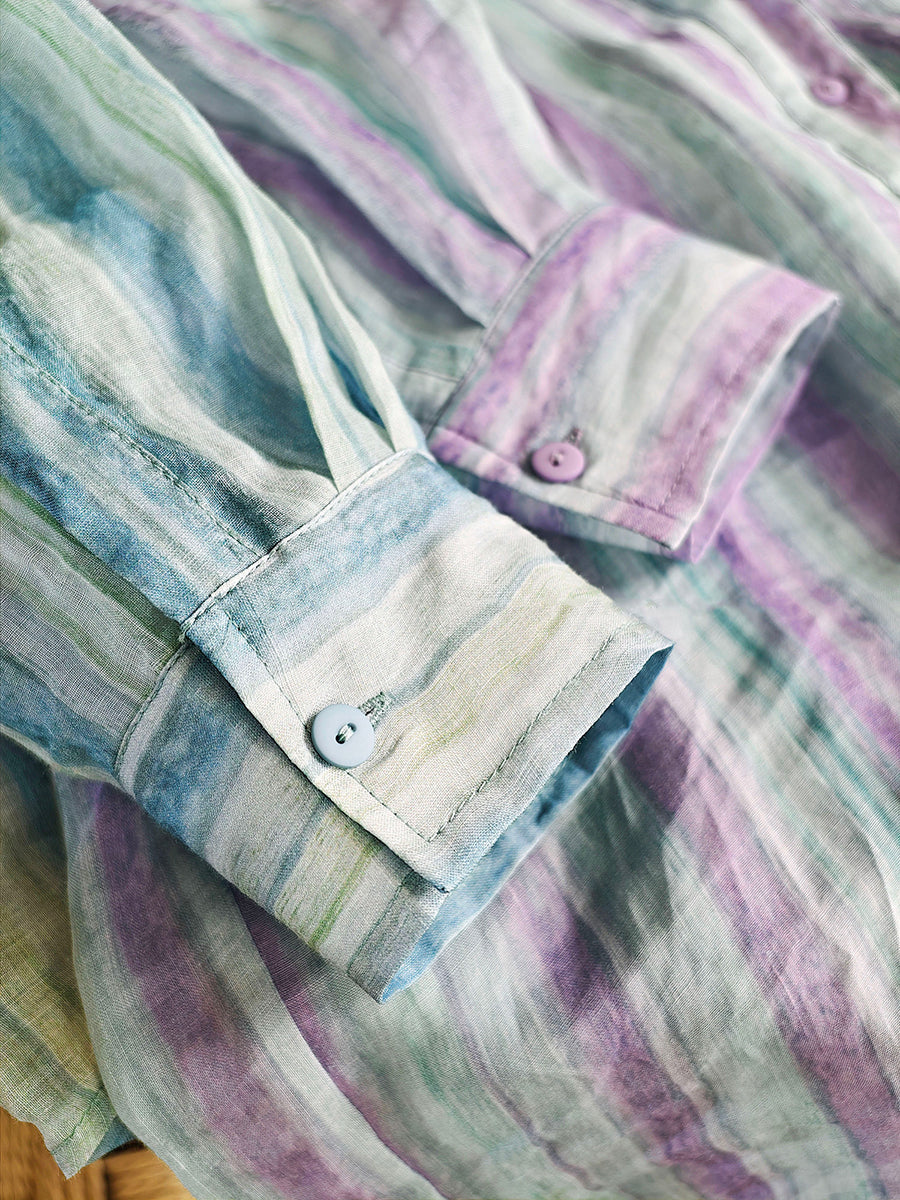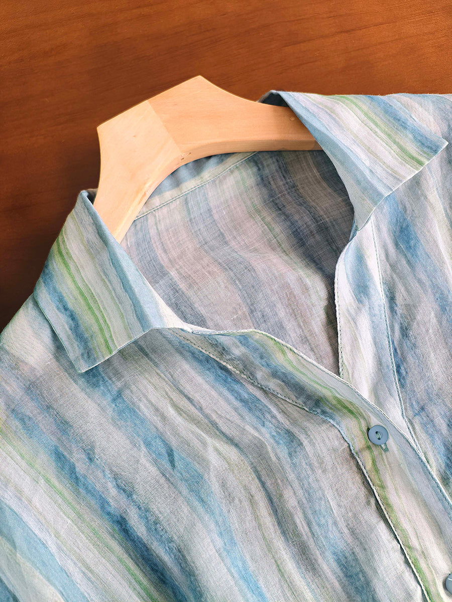 Women Summer Artsy Stripe 100%Ramie Blouse