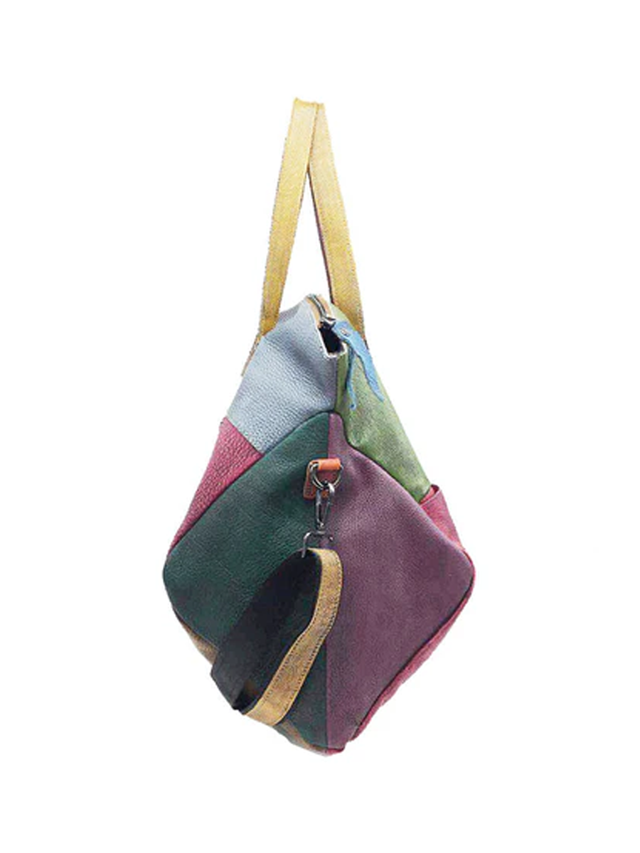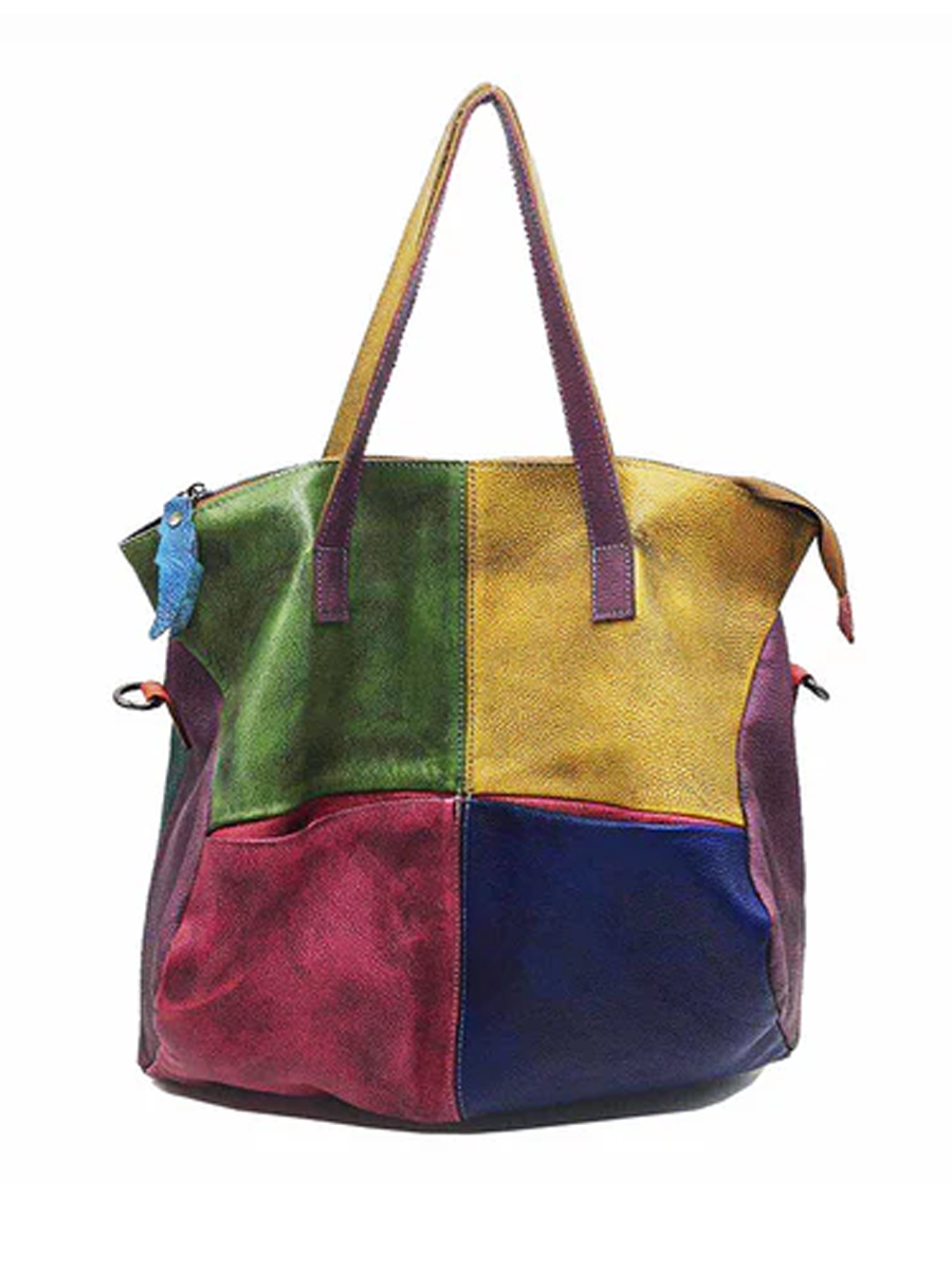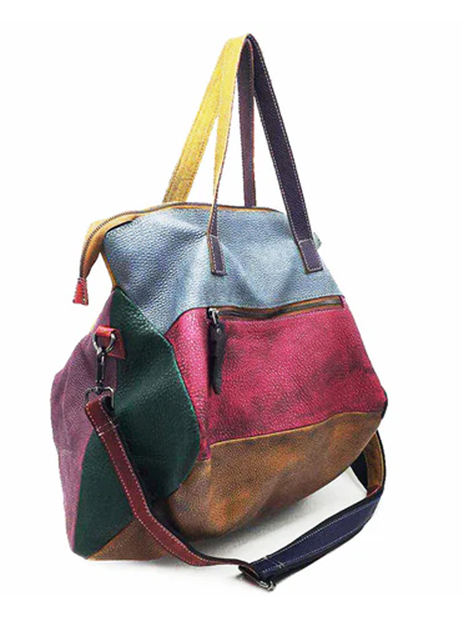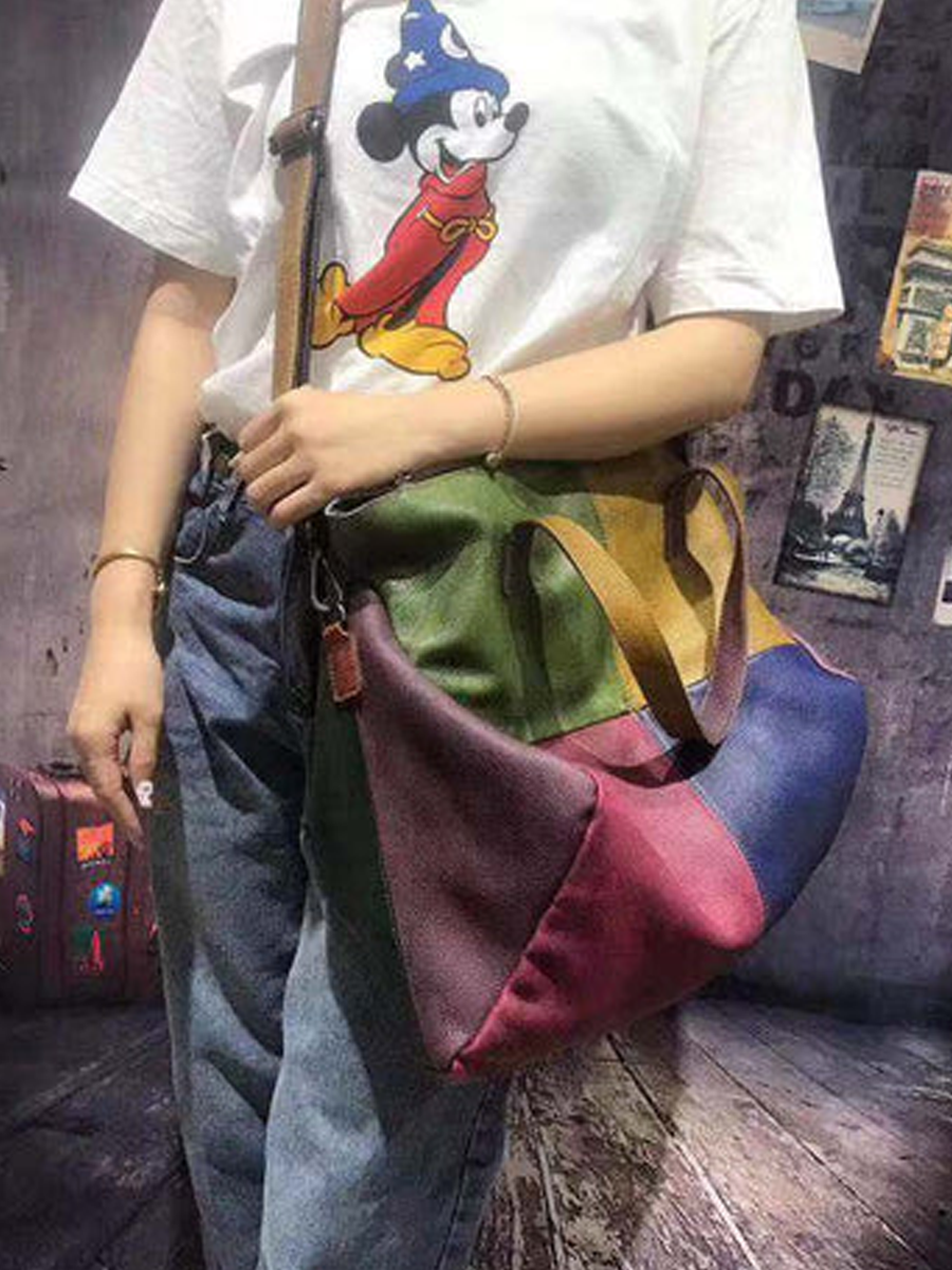 Vintage Leather Color Contrast Large Capacity Shoulder Bag