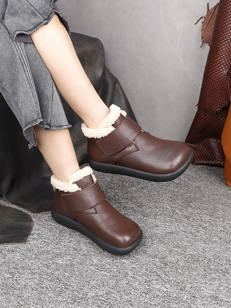 Women Winter Genuine Leather Fleece-lined Ankle Boots
