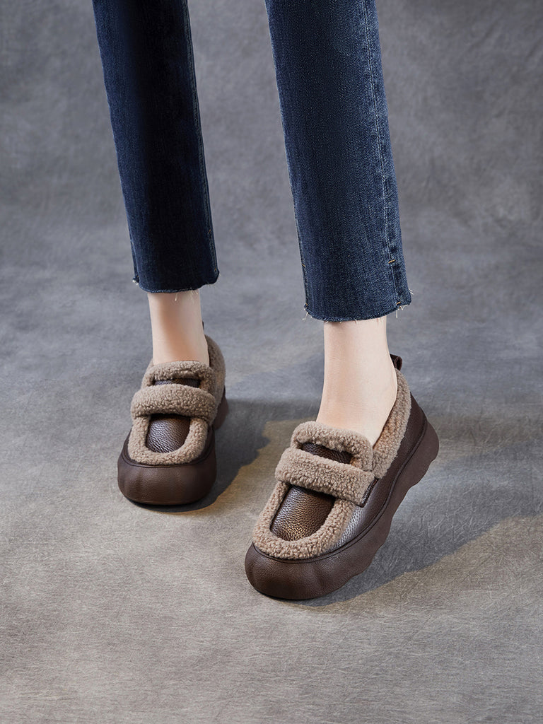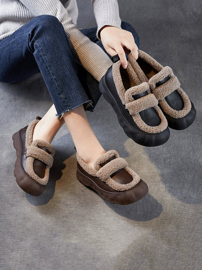 Women Winter Genuine Leather Fleece-lined Platform Shoes