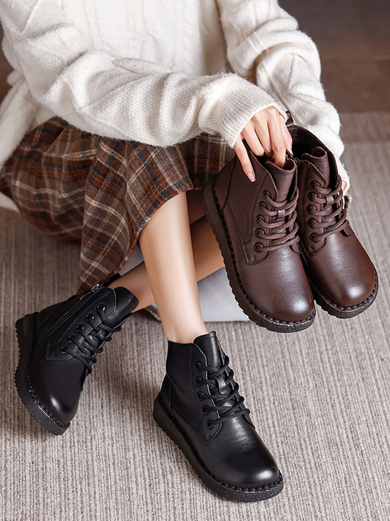 Women Winter Genuine Leather Fleece-lined Martin Boots