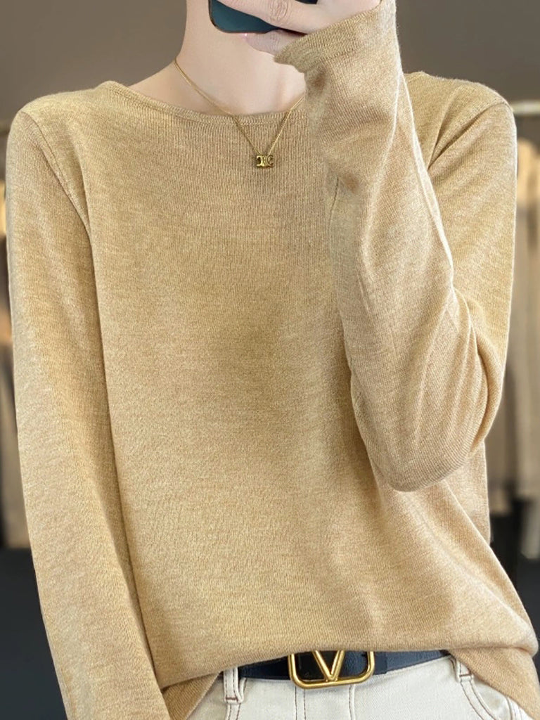 Women Autumn Casual Pure Color O-Neck Knit Sweater