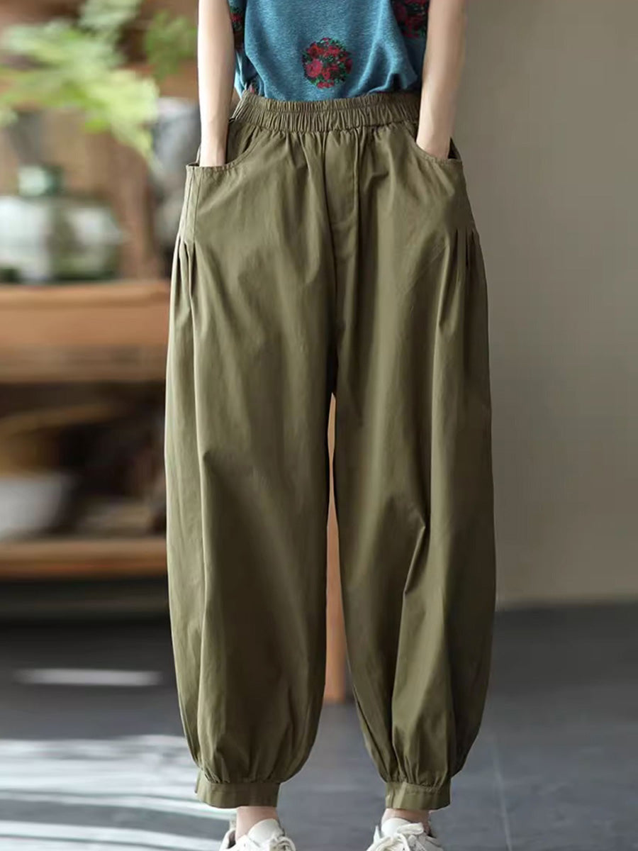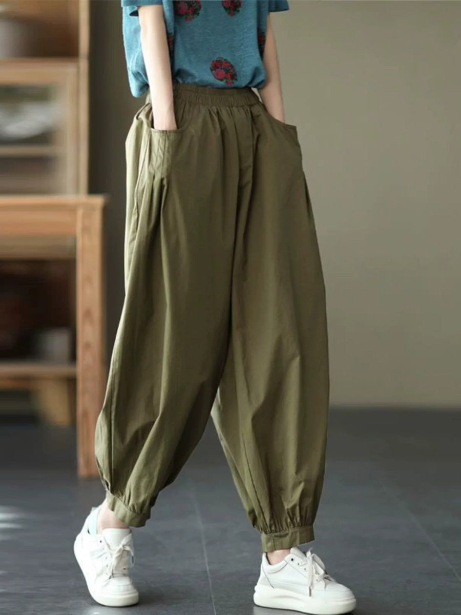 Women Summer Casual Pure Color Harem Pants