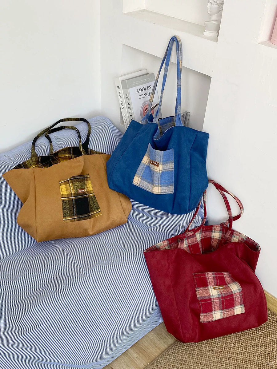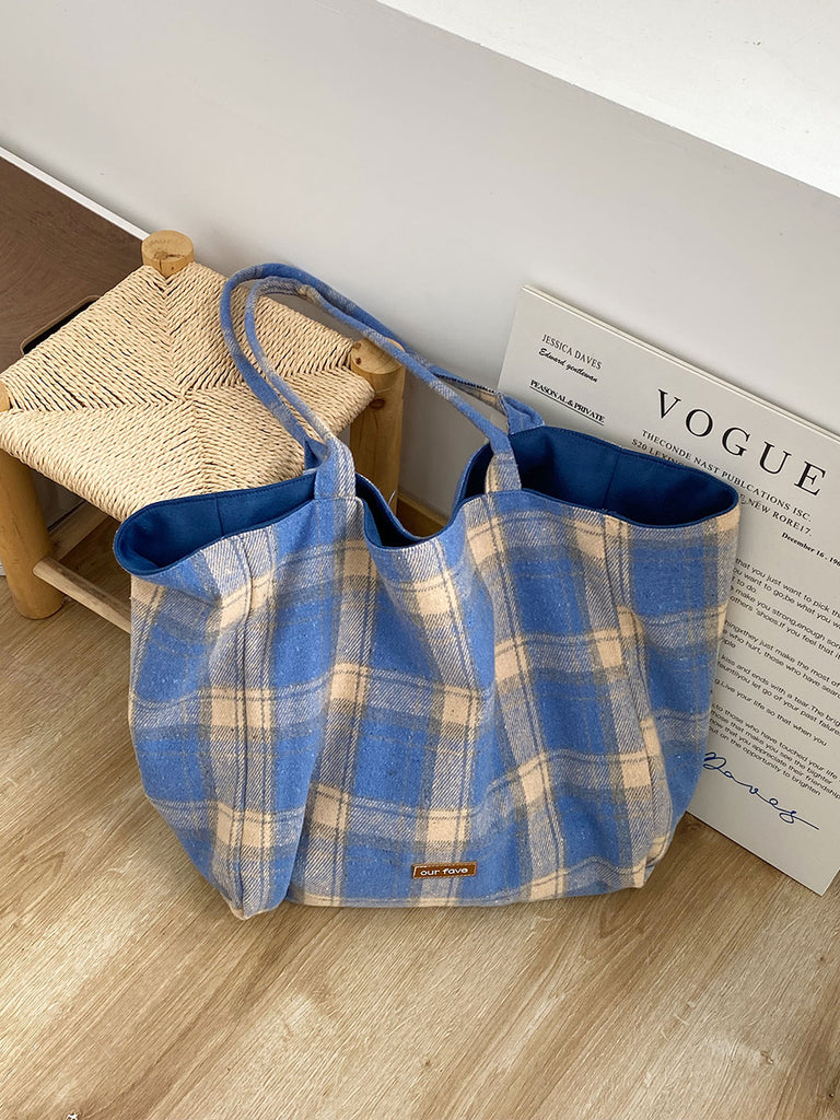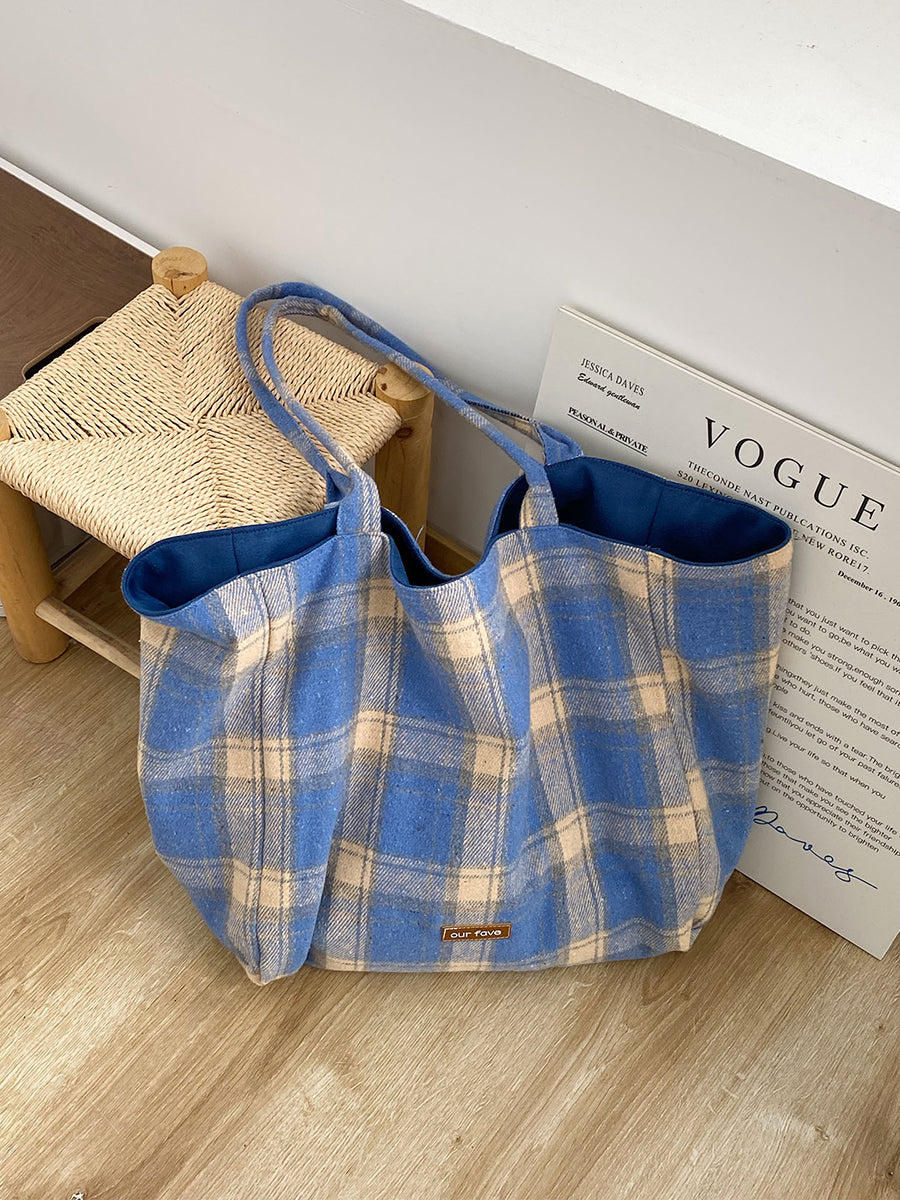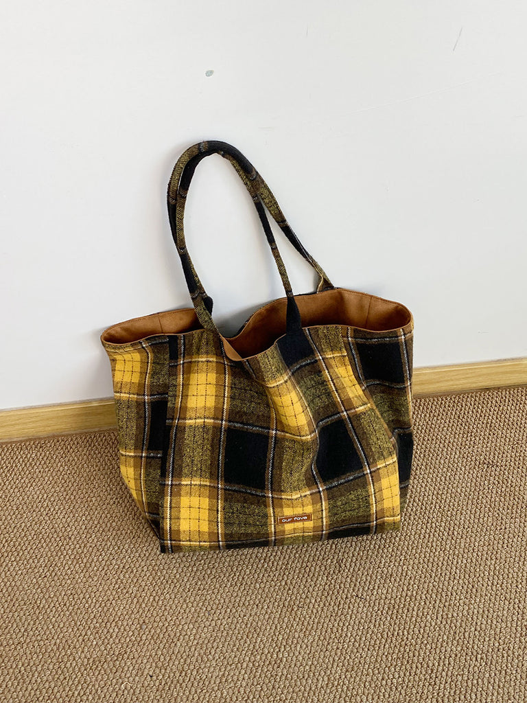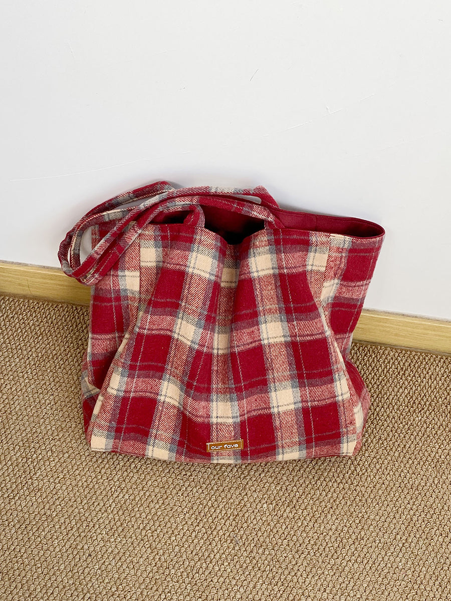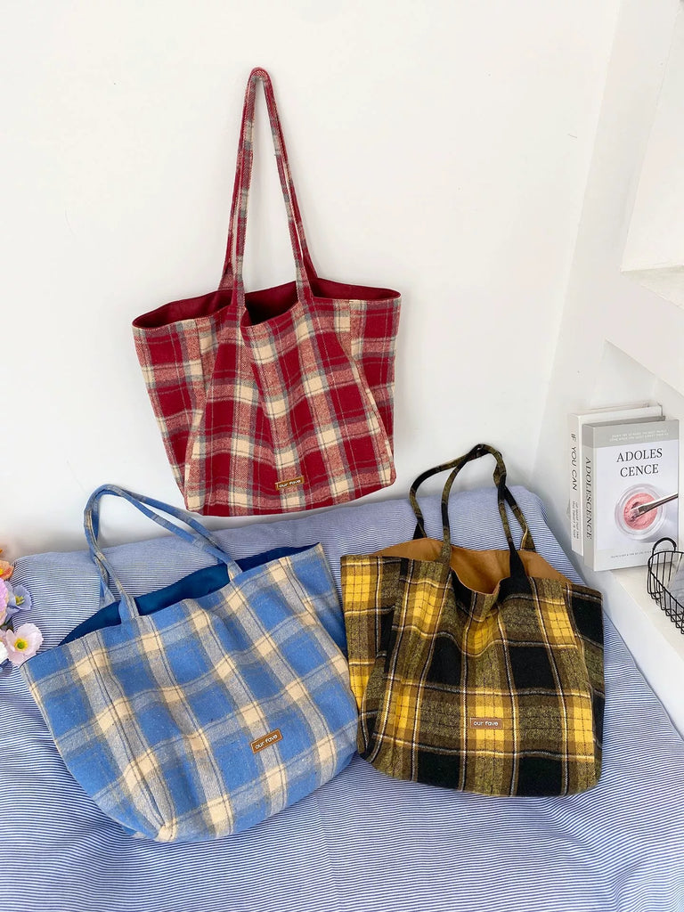 Women Winter Artsy Plaid Canvas Shoulder Bag