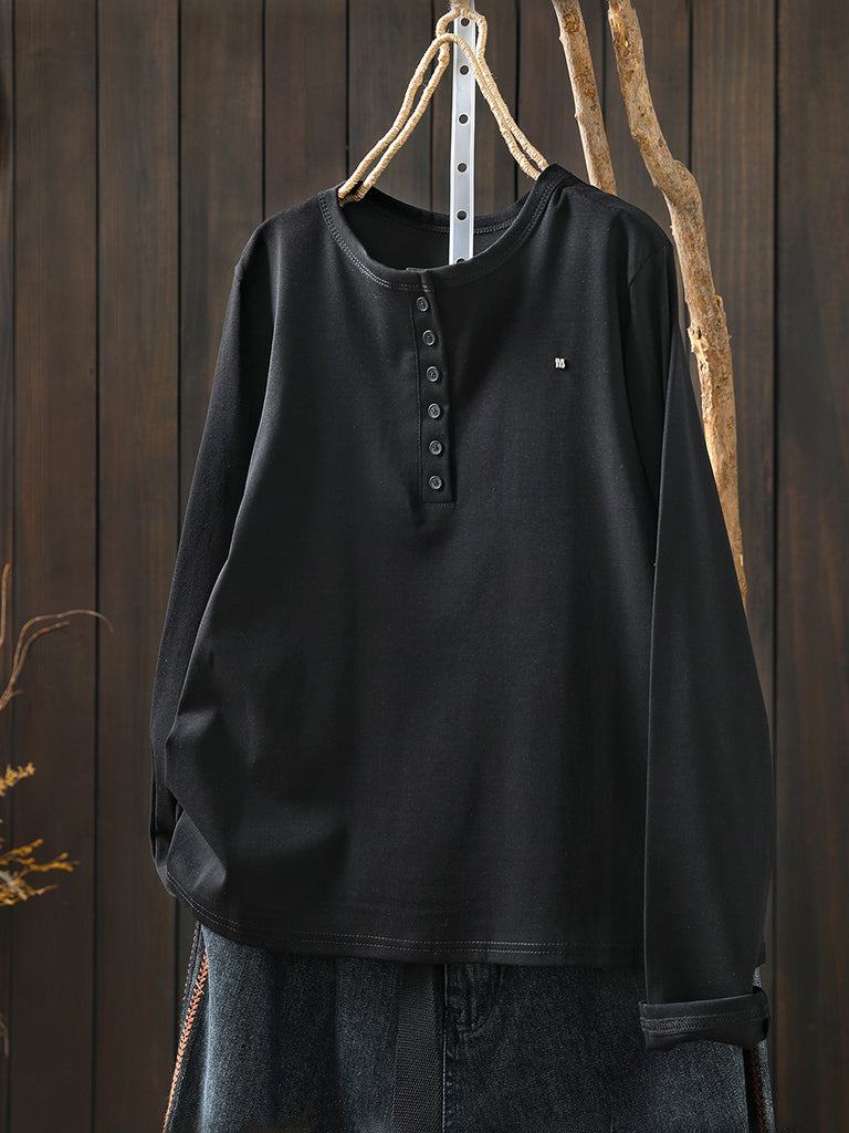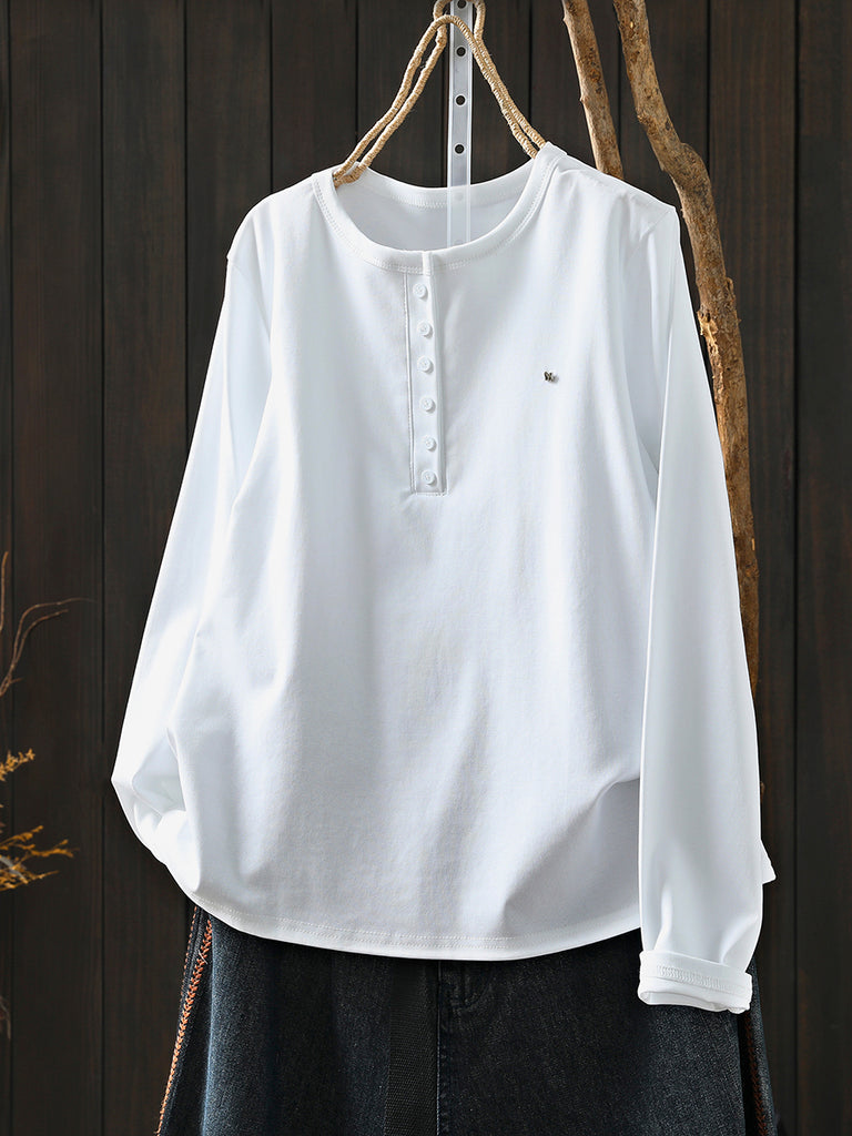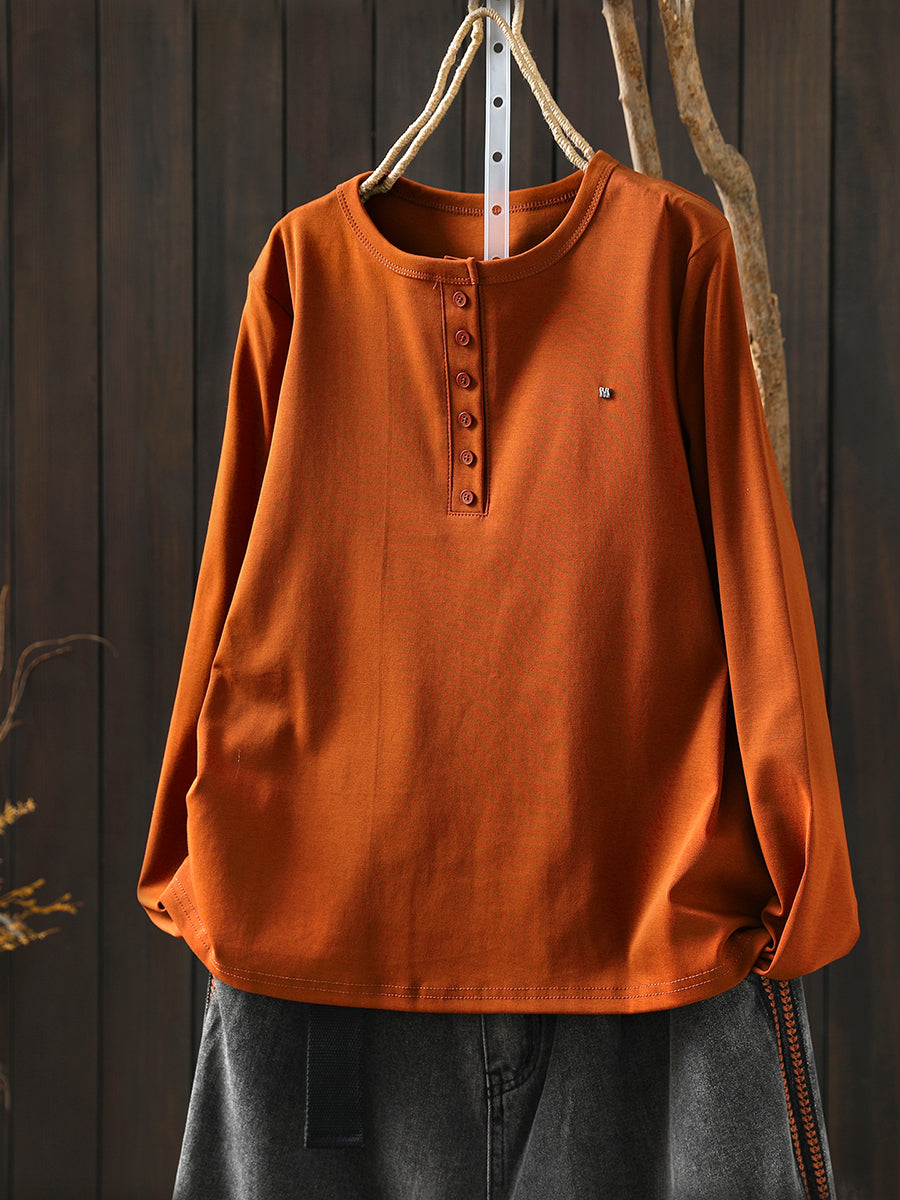 Women Winter Artsy Pure Color O-Neck Cotton Blouse