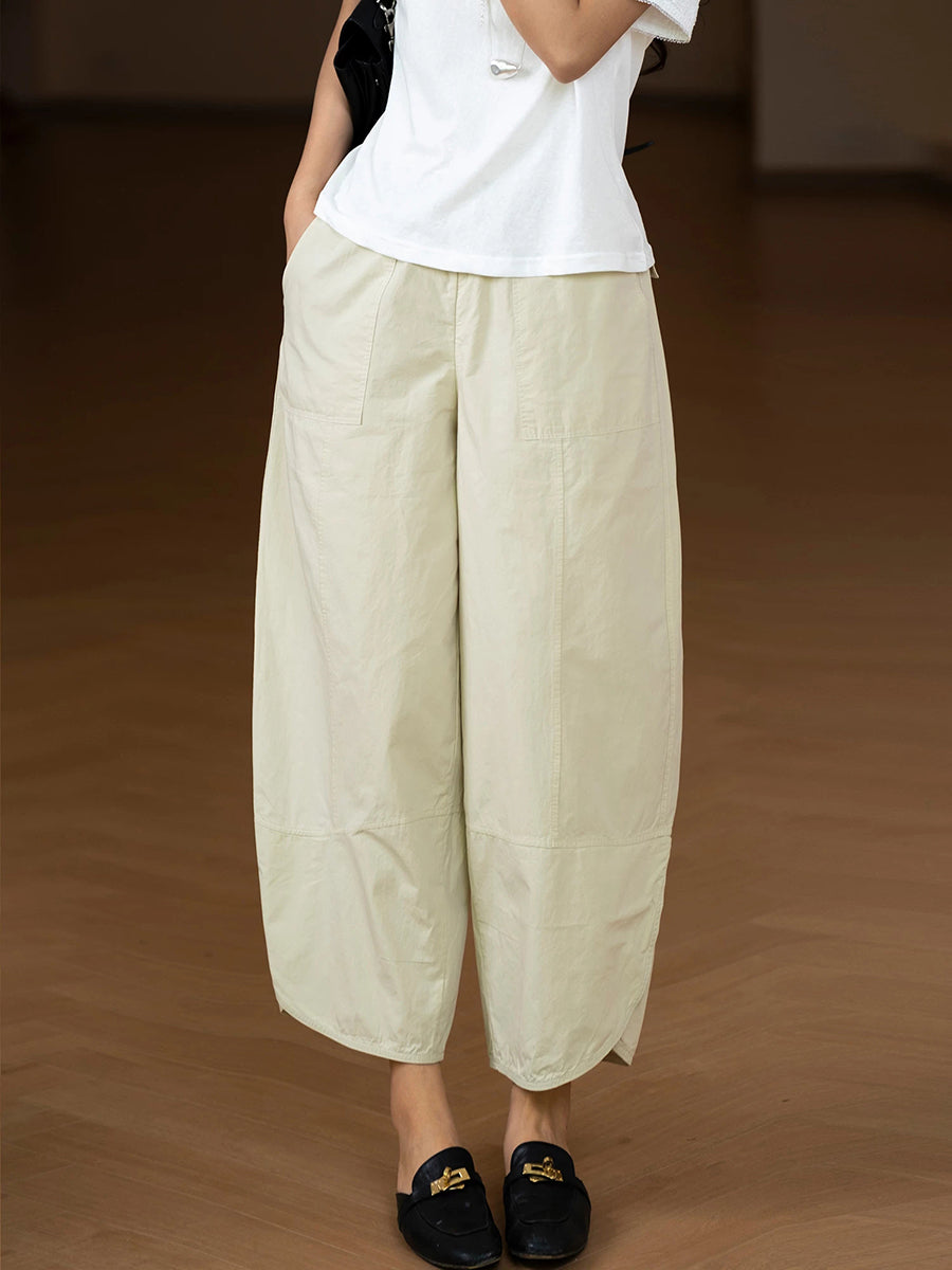Plus Size Women Summer Casual 100%Cotton Wide-leg Pants