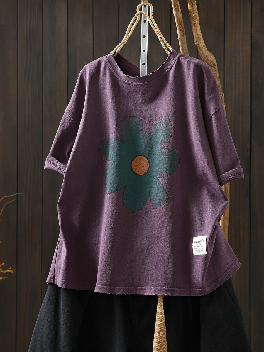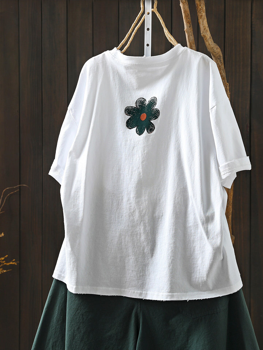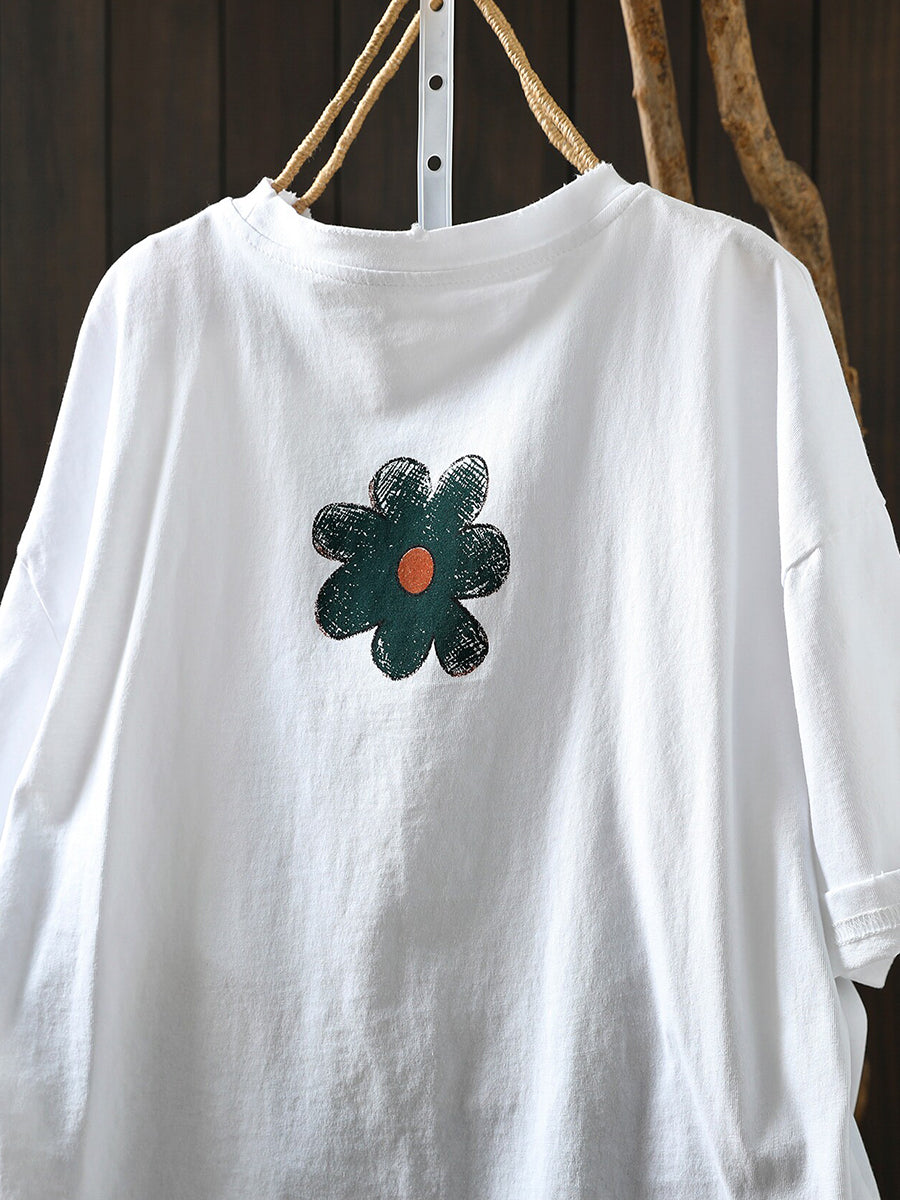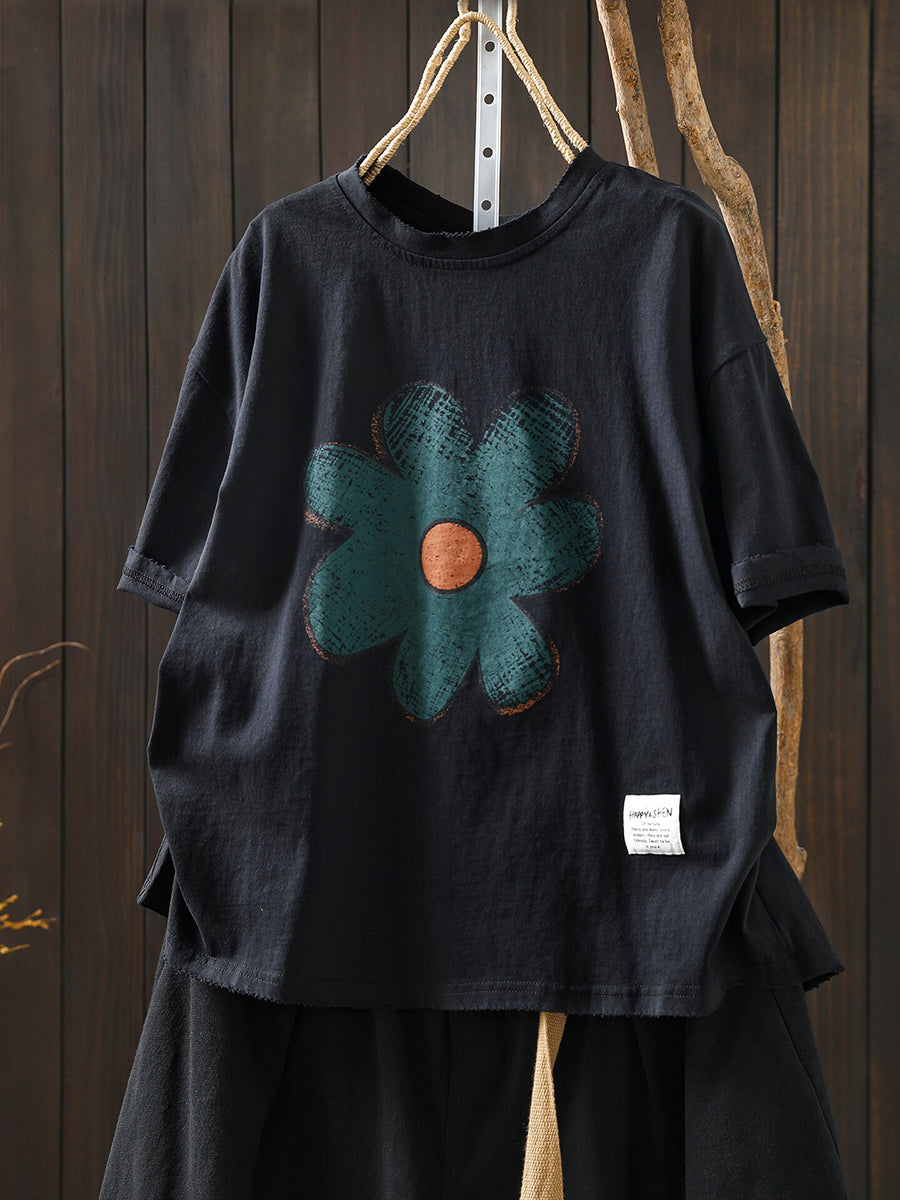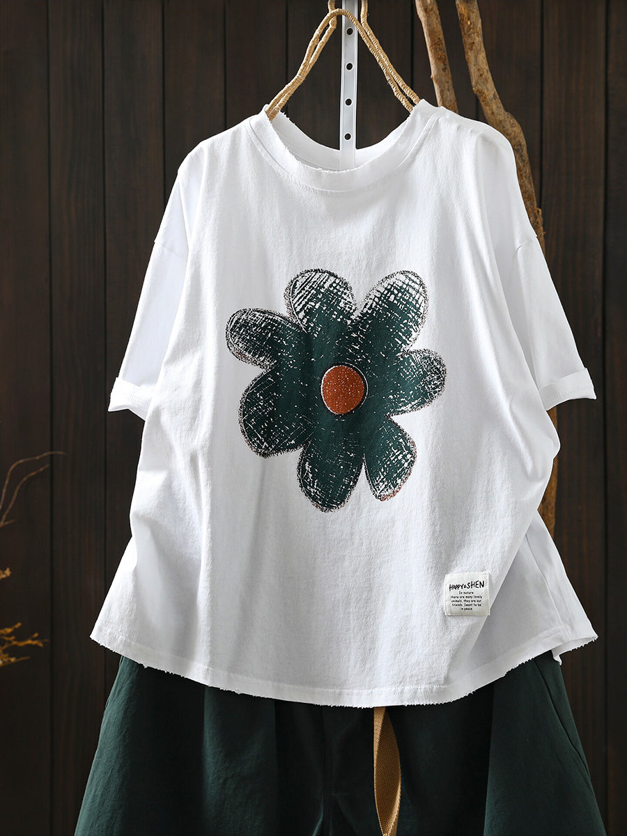Women Summer Artsy Flower Cotton T-Shirt
