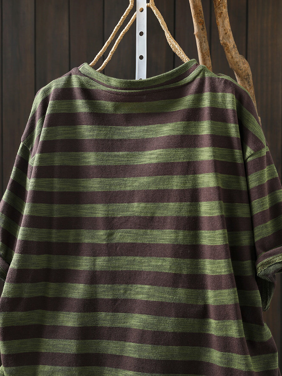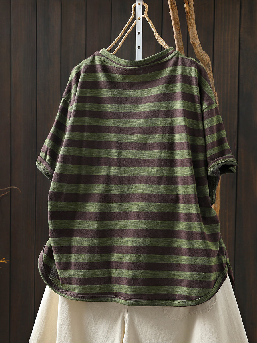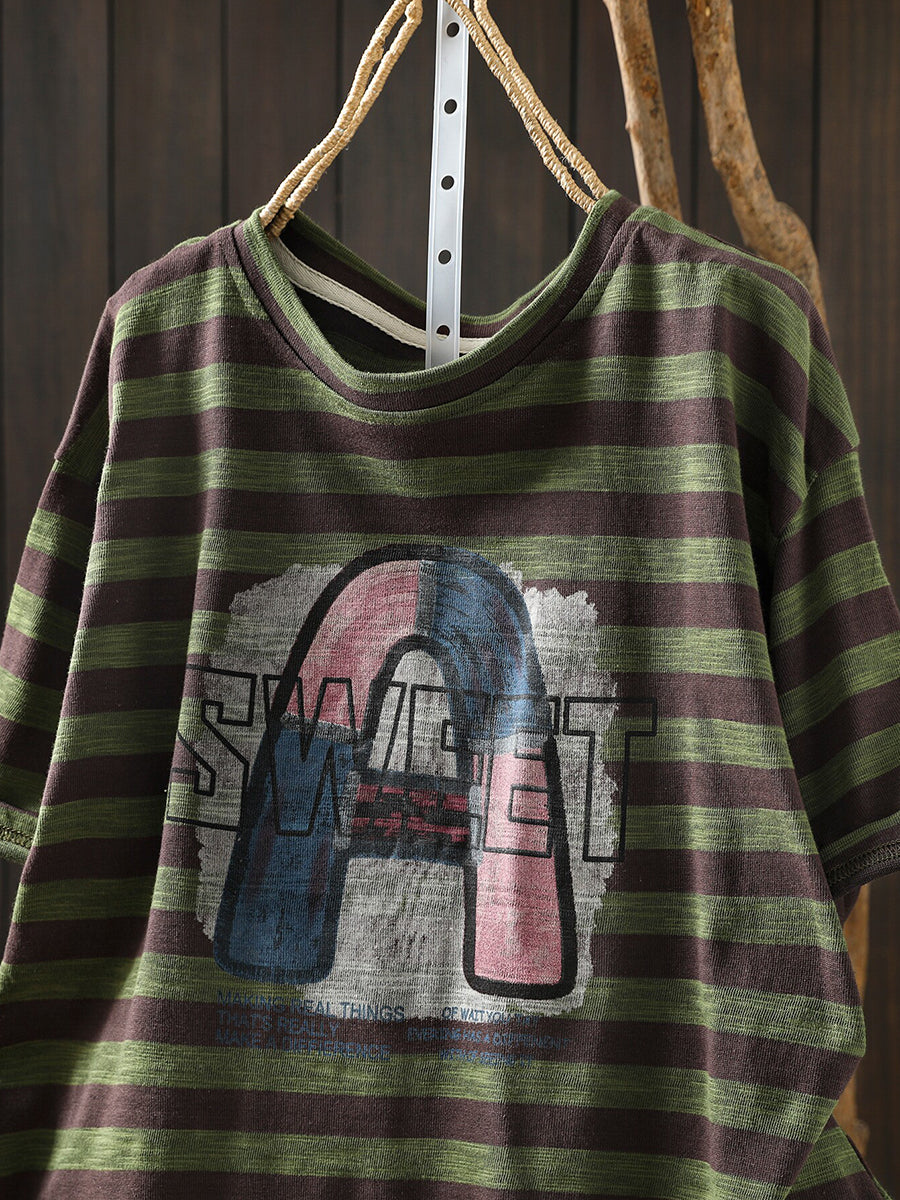 Women Summer Casual Stripe Letters Cotton T-Shirt