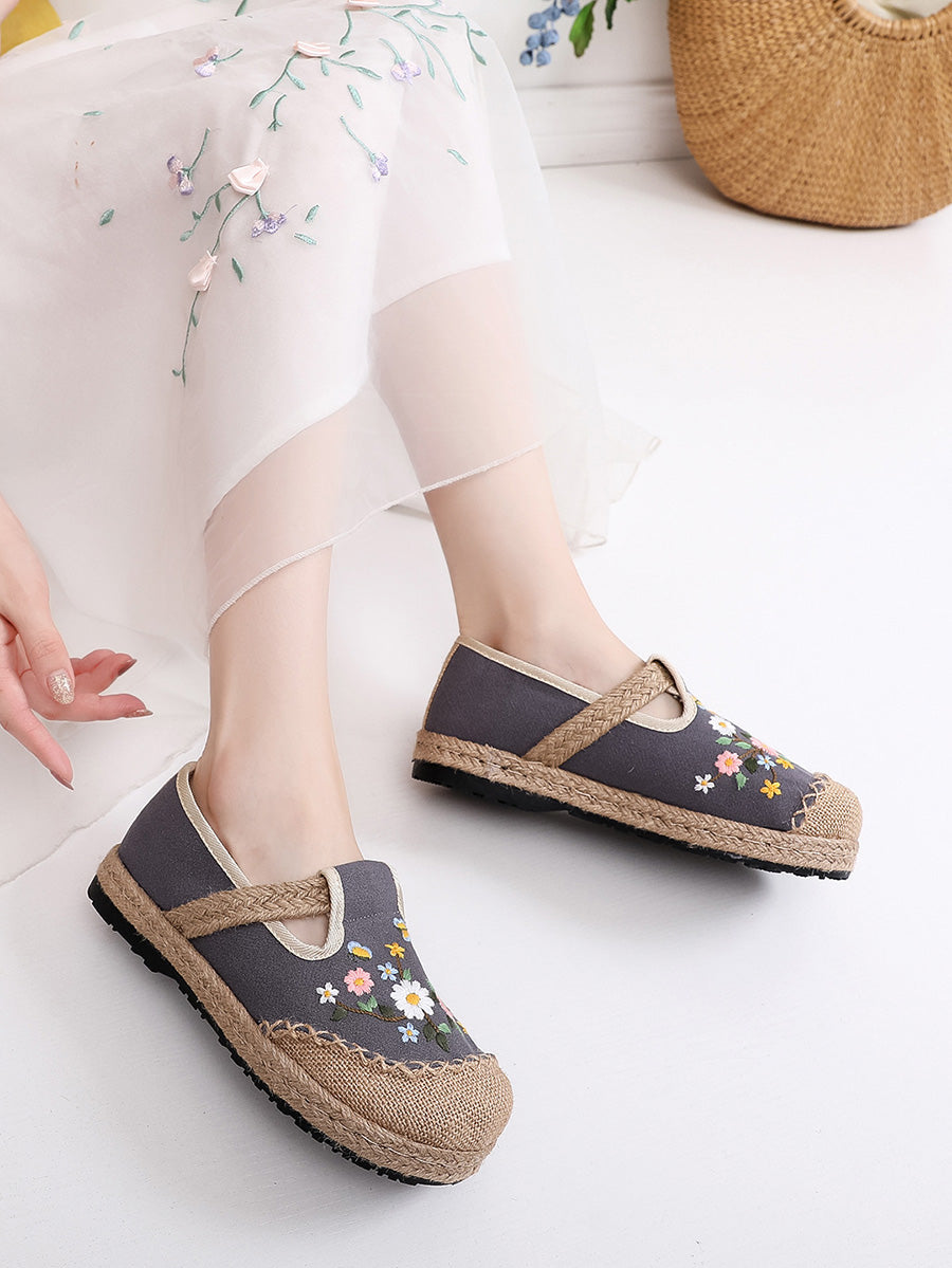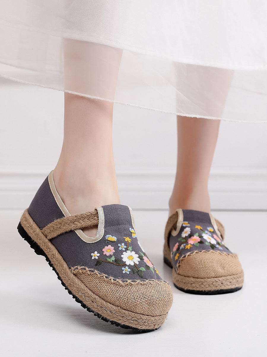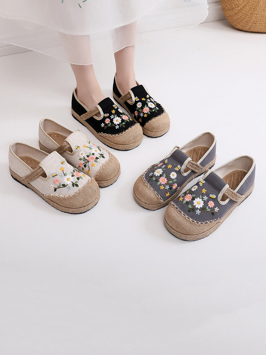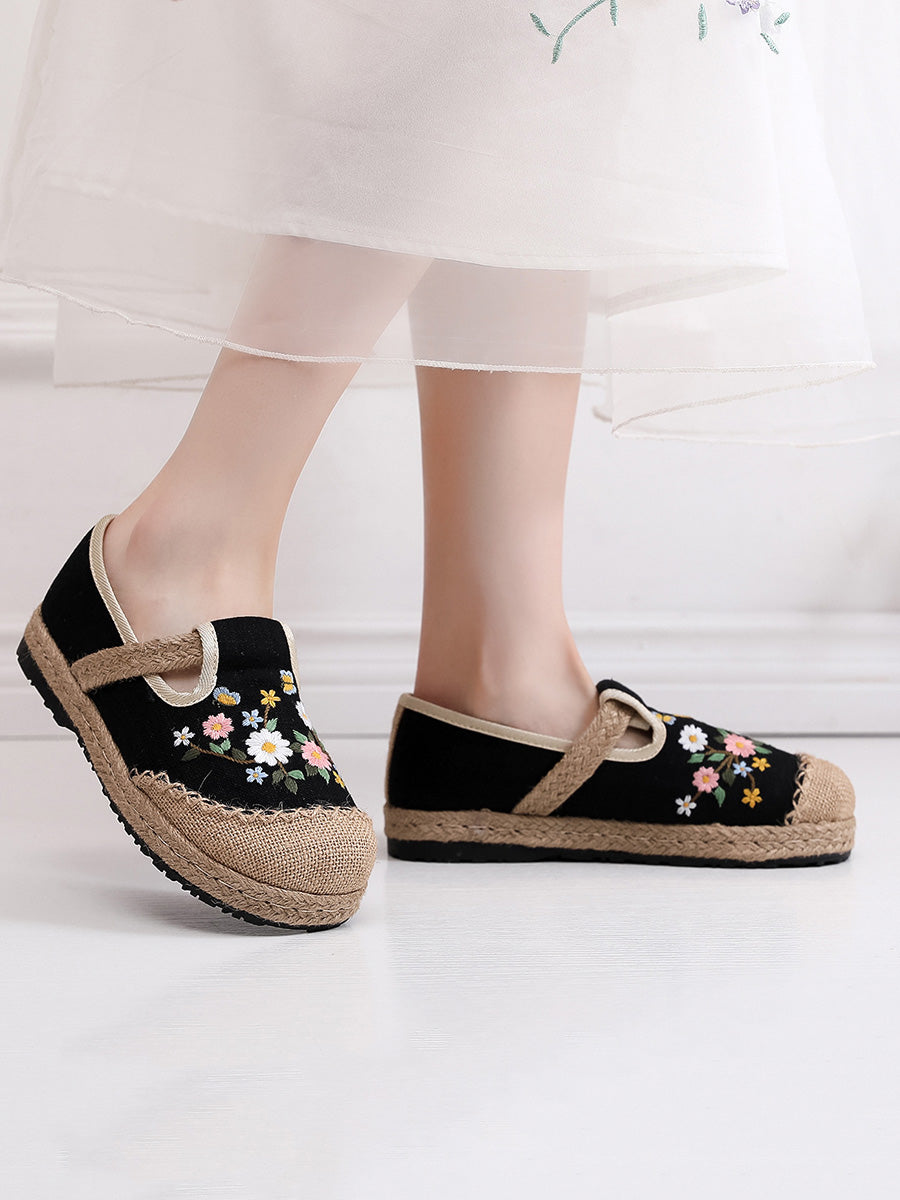 Women Summer Artsy Flower Embroidery Canvas Shoes