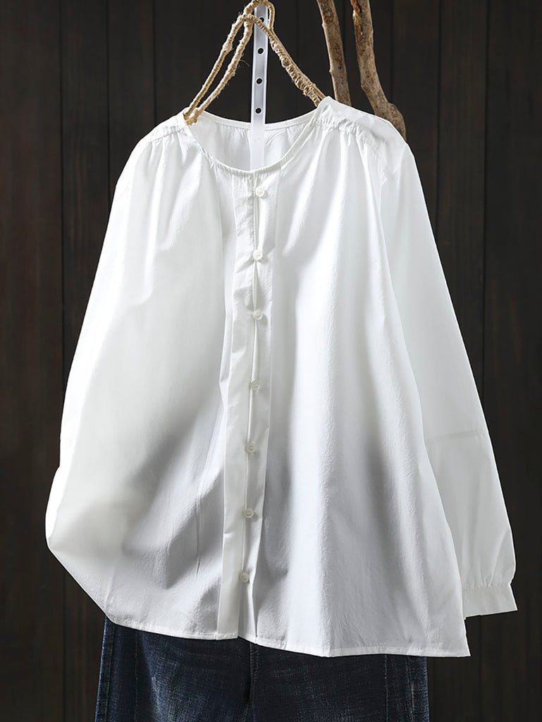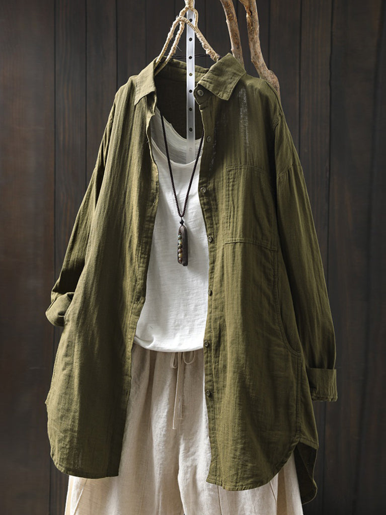 Women Pure Color Turn-down Collar 100%Cotton Shirt Coat