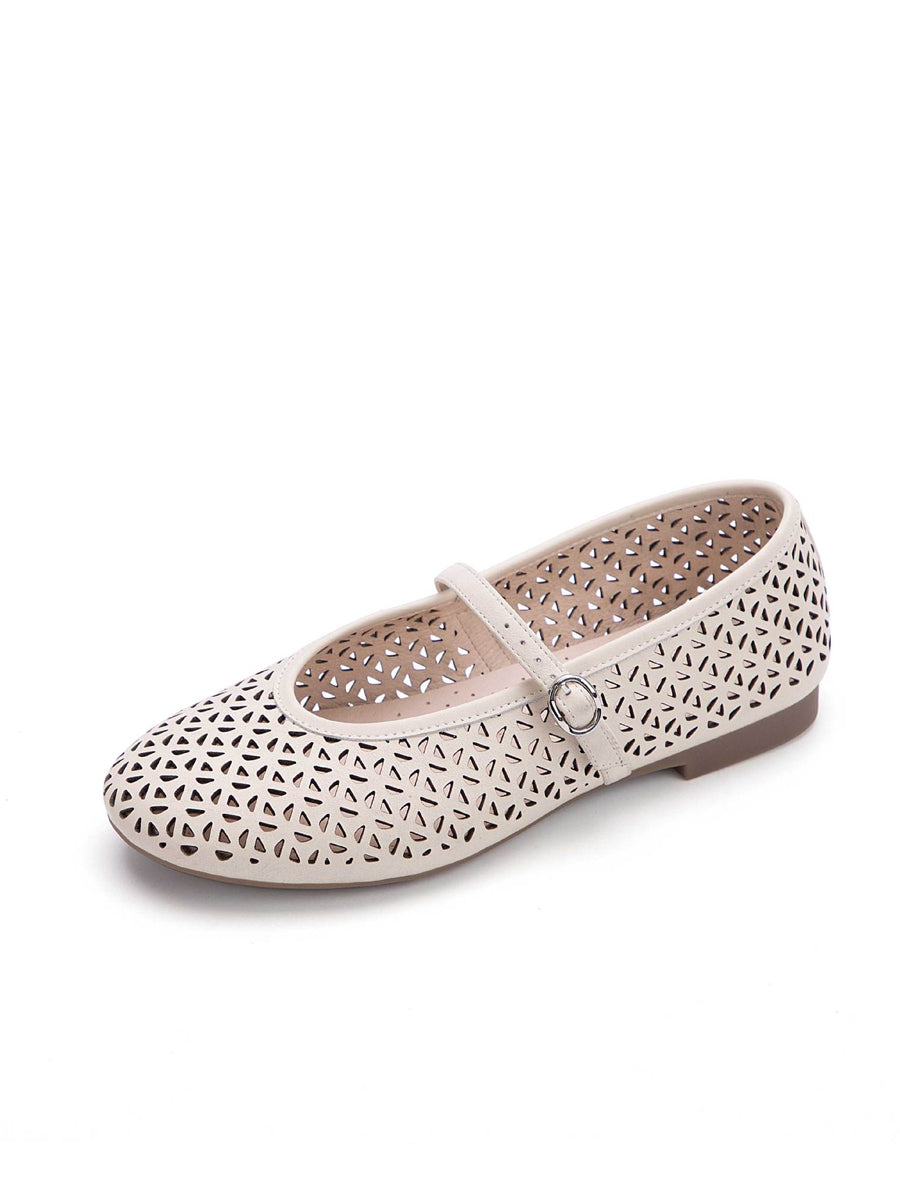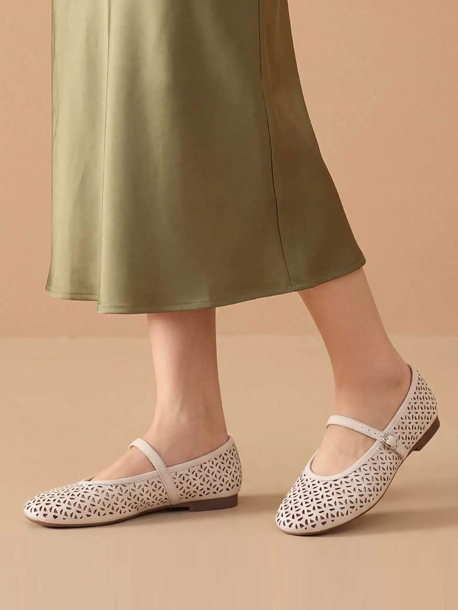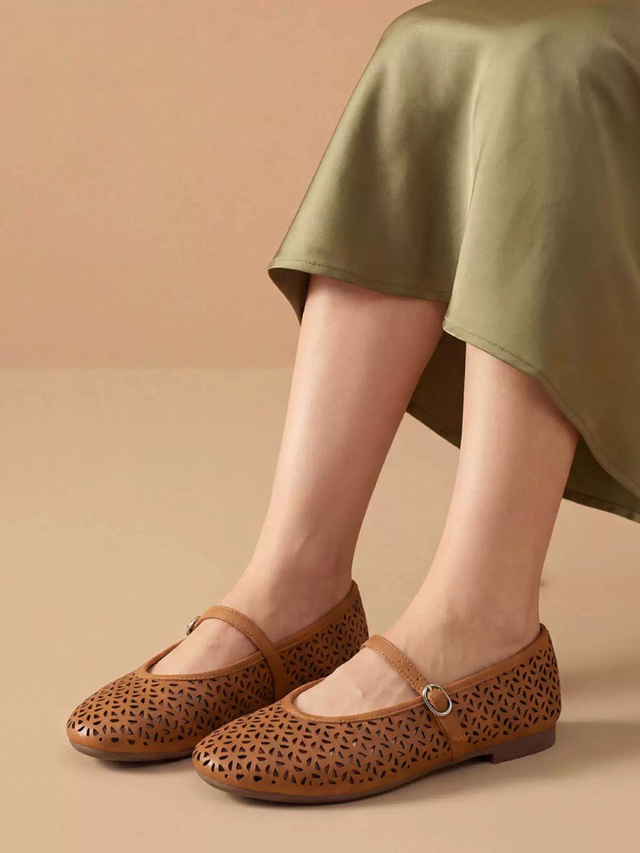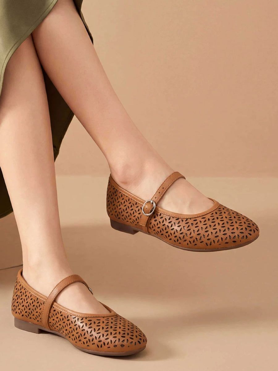 Women Summer Versatile Genuine Leather Mary Jean Shoes