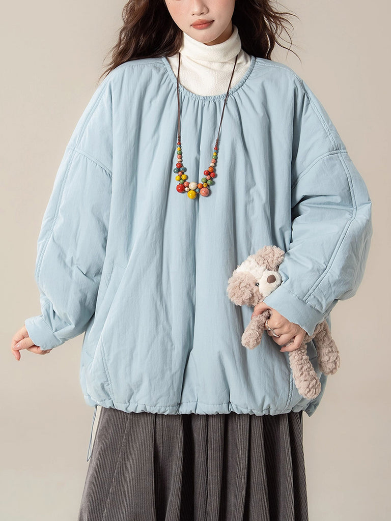 Women Autumn Casual Pure Color O-Neck Padded Blouse