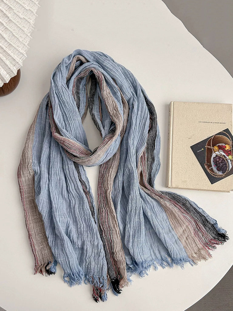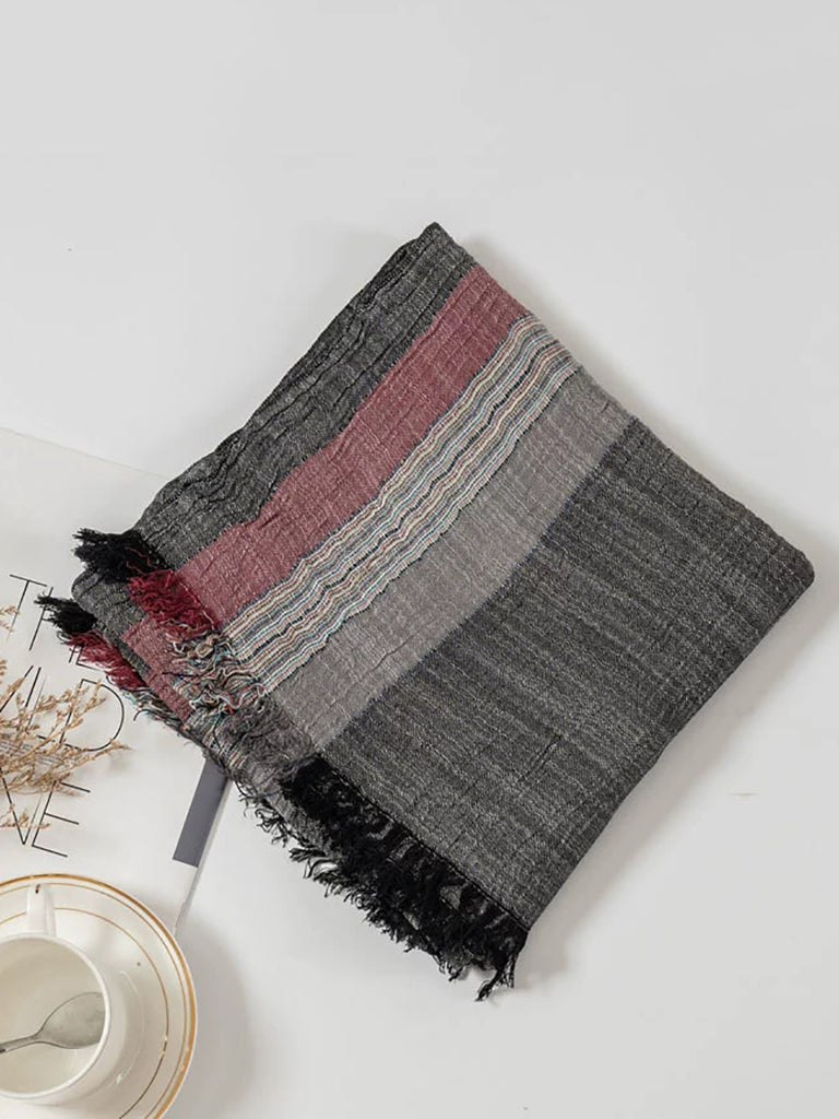 Women Artsy Stripe Raw-edge Shawl Scarf