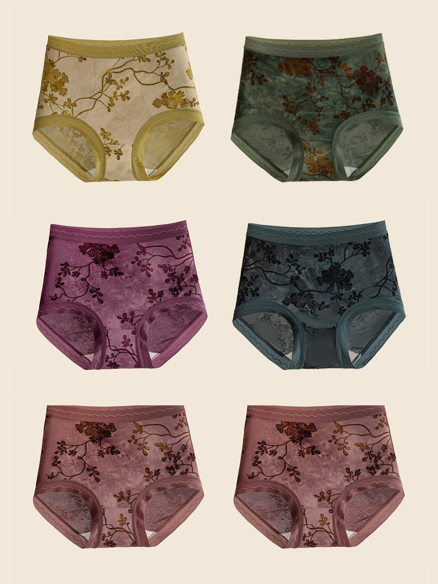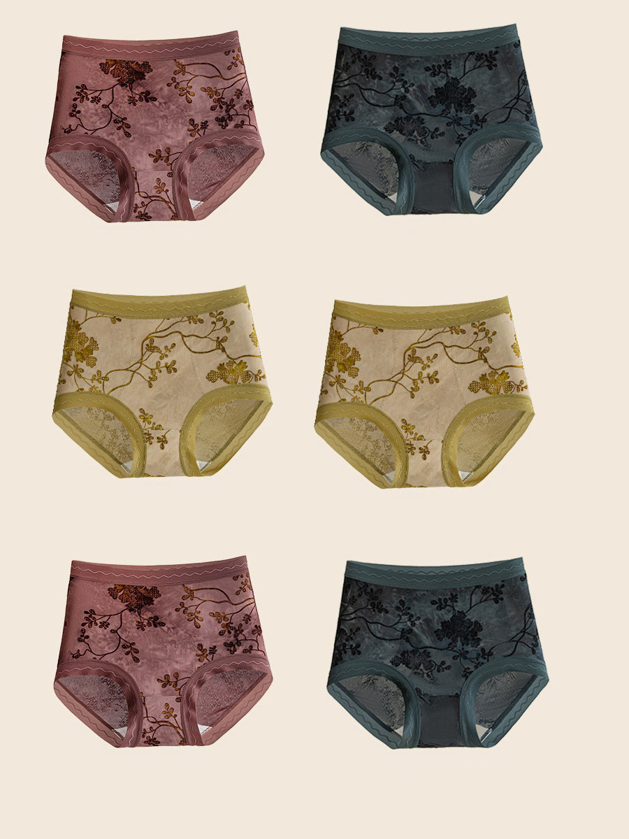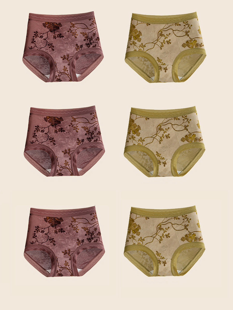 6 Pieces Women Flower Jacquard High Waist Underwear
