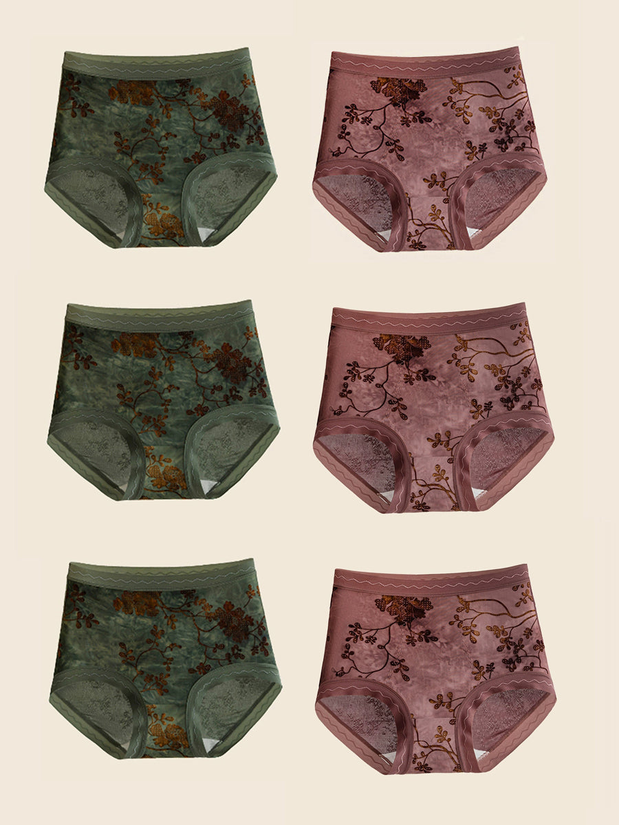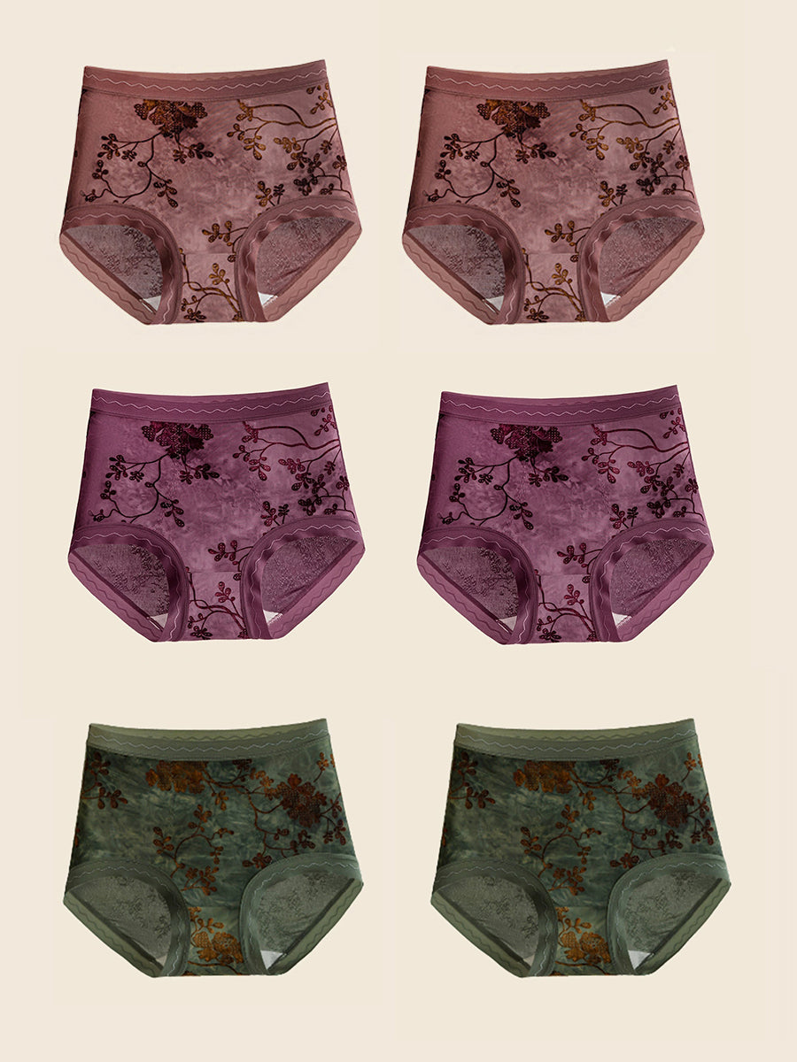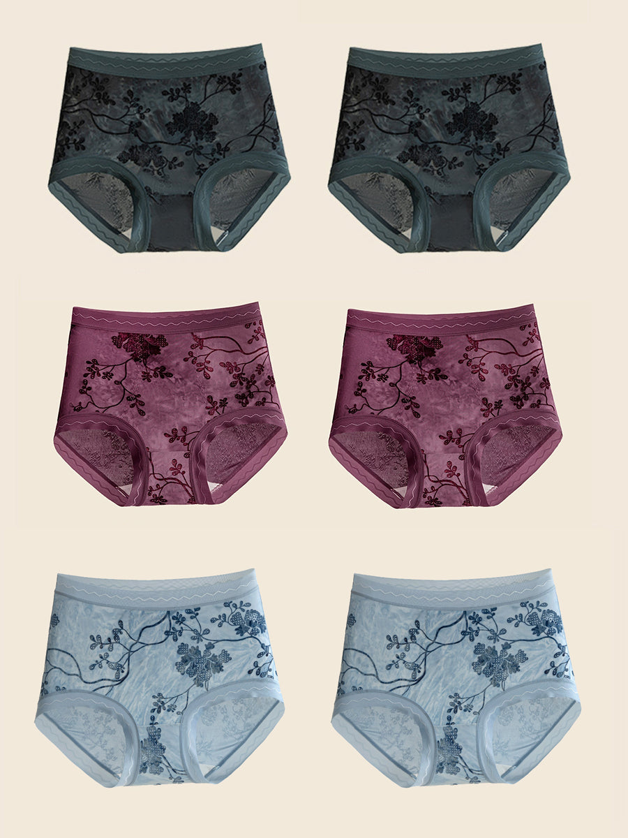 6 Pieces Women Flower Jacquard High Waist Underwear