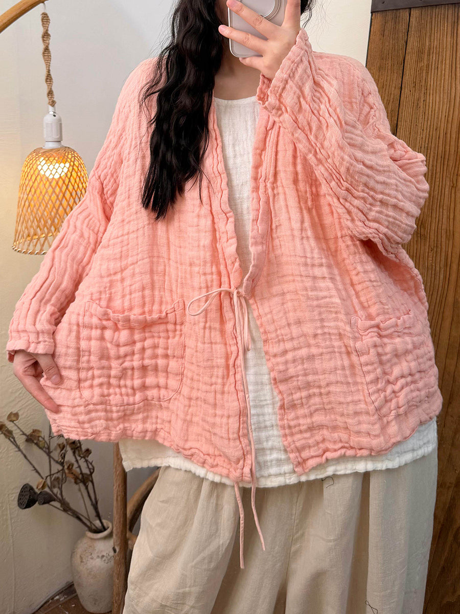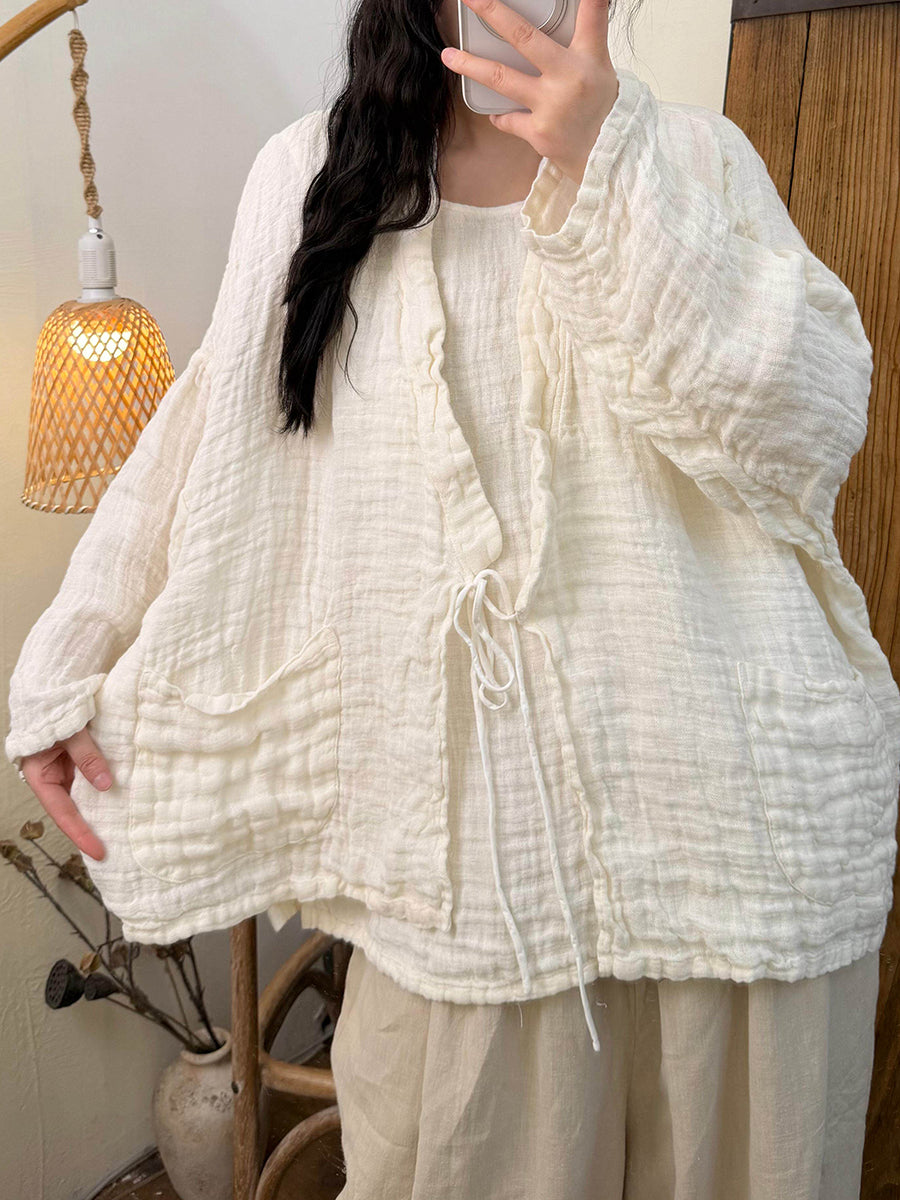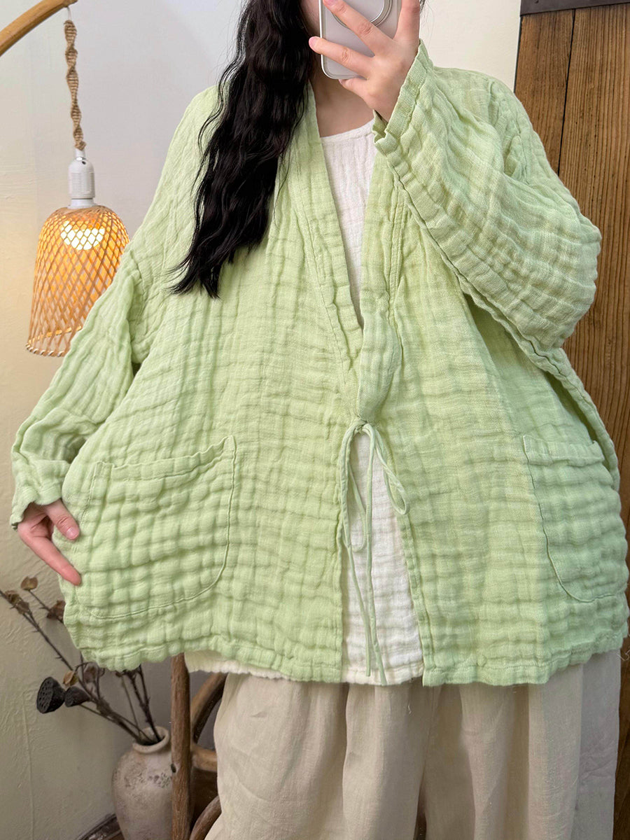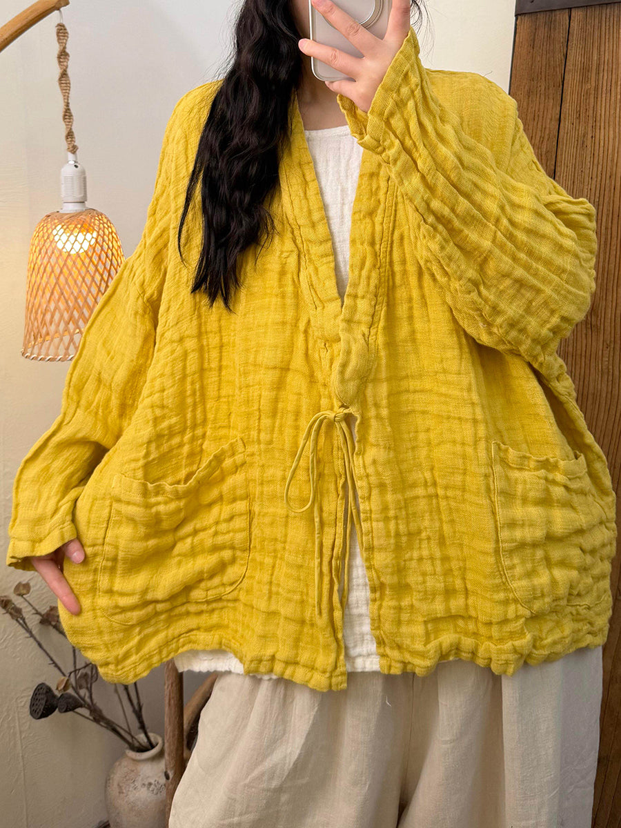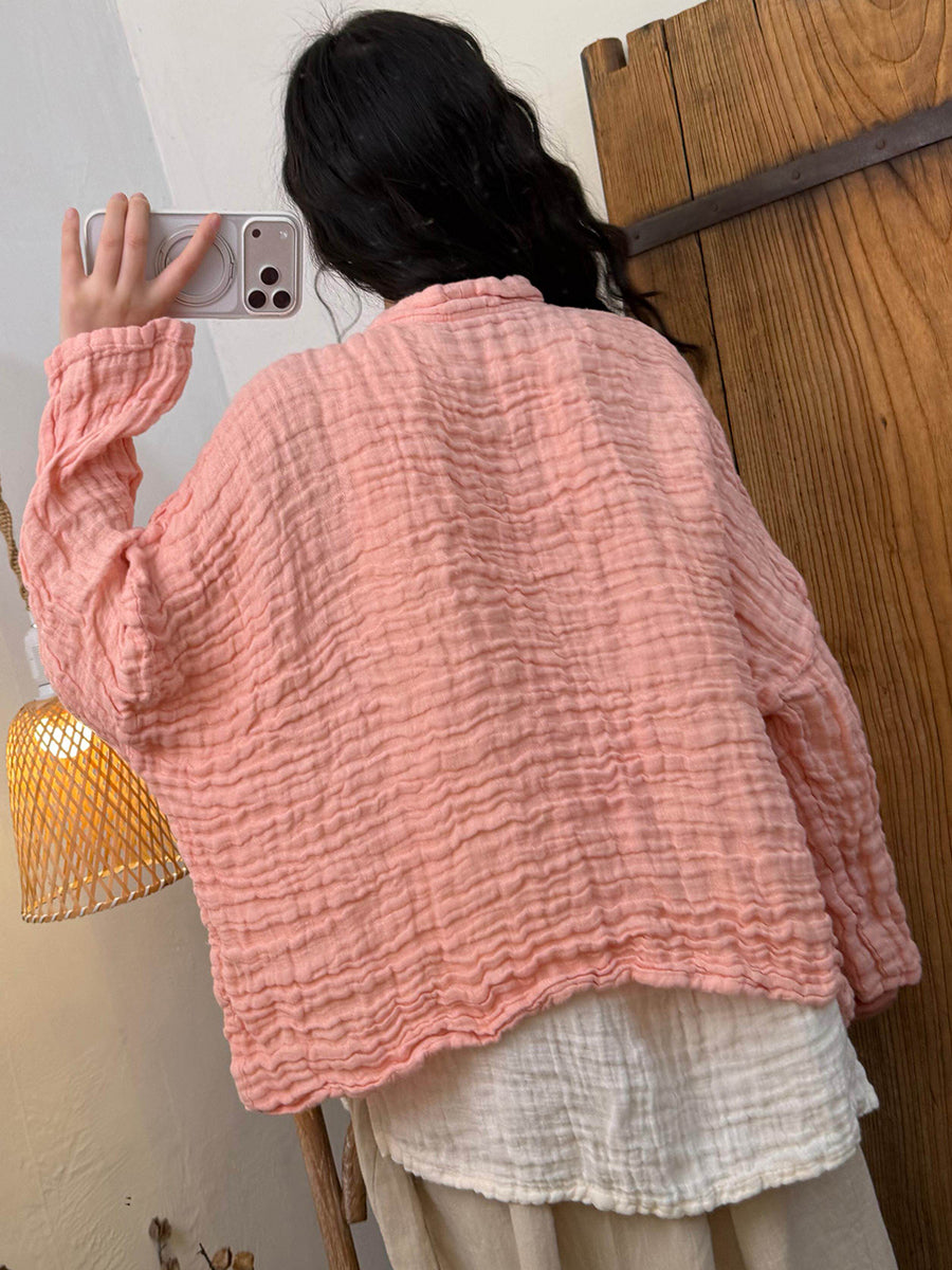 Women Spring Artsy Pure Color Cotton V-Neck Shirt
